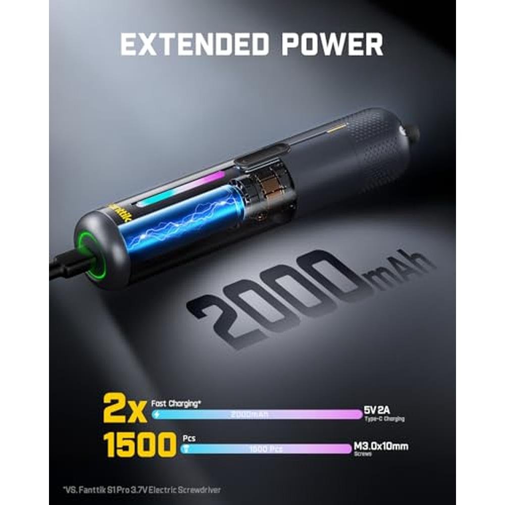 - The Fanttik S2 Pro 3.7V electric screwdriver is specially equipped with a 90 angle adapter to reach small spaces such as drawers and corner screw holes