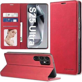 Case Samsung S25 Ultra | Flip Leather Cover with Hinge Protection | Slim Thin Magnetic Wallet Case