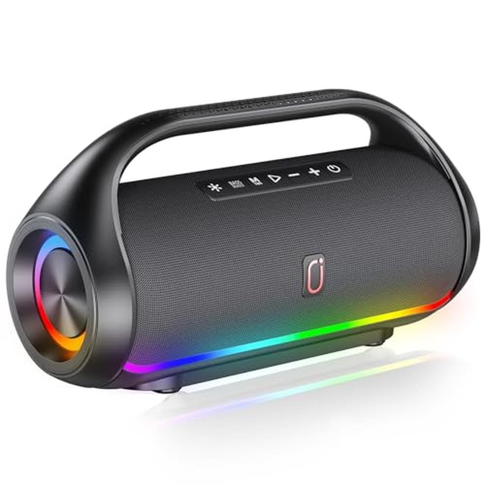 - Portable and Durable Design: Lightweight and equipped with a handle, this speaker is easy to carry and perfect for outdoor activities. Its IPX5 waterproof rating protects it from rain, dust, and spills, making it suitable for use in various weather conditions.