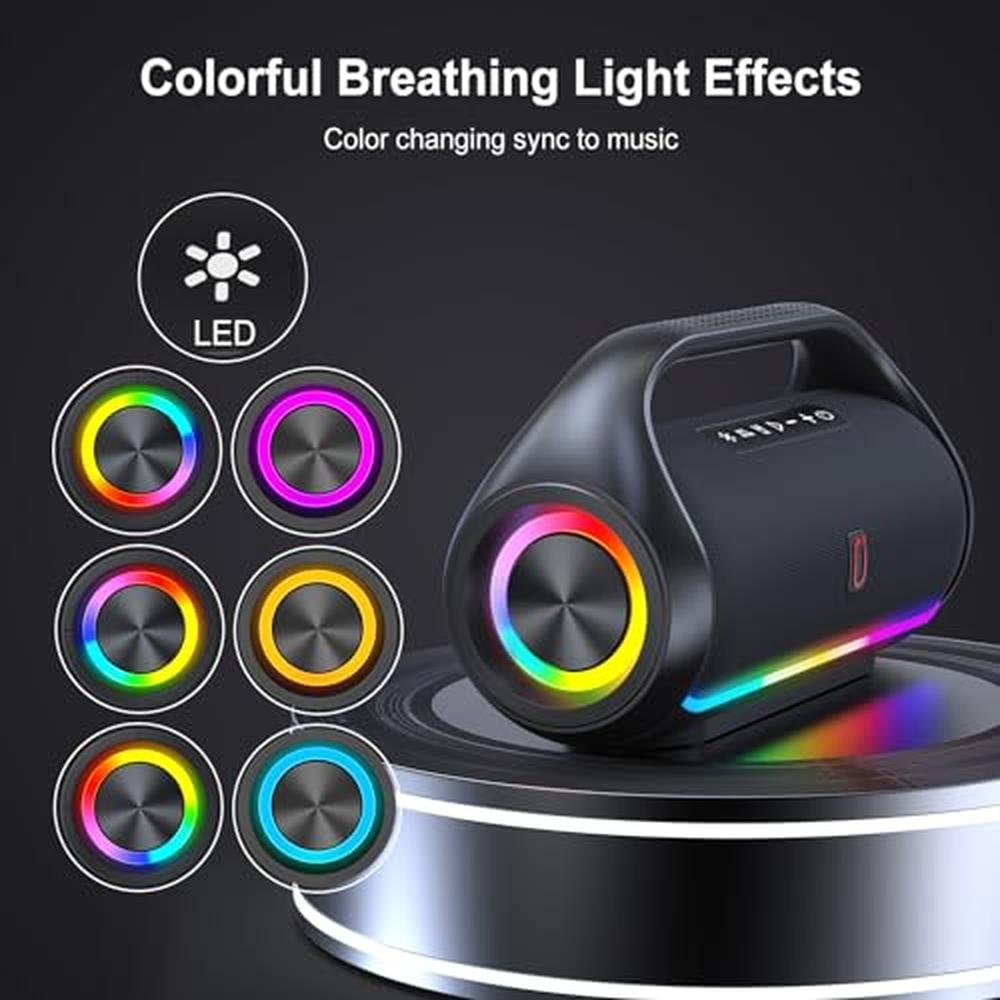 HWWR Bluetooth Speaker, IPX5 Waterproof Portable Bluetooth Speaker with Powerful Bass & LED Lights, BT5.3, Wireless Stereo Pairing for Home Party, Beach, Outdoor Camping, Support USB/TF Card/AUX/TWS