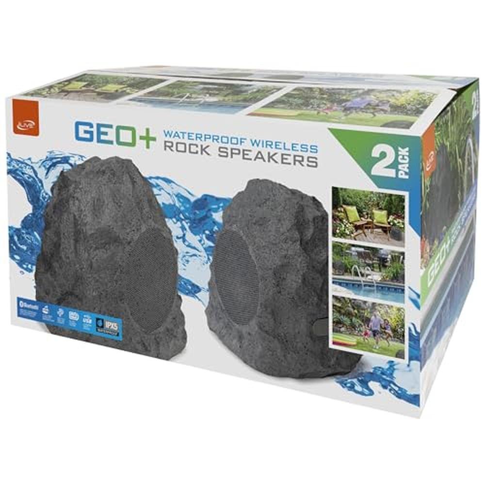 iLive Electronics Outdoor Rock Speaker Pair - Wireless Waterproof Bluetooth Speakers for Patio, Garden, Built for All Seasons with Rechargeable Battery (ISBW422G), Gray