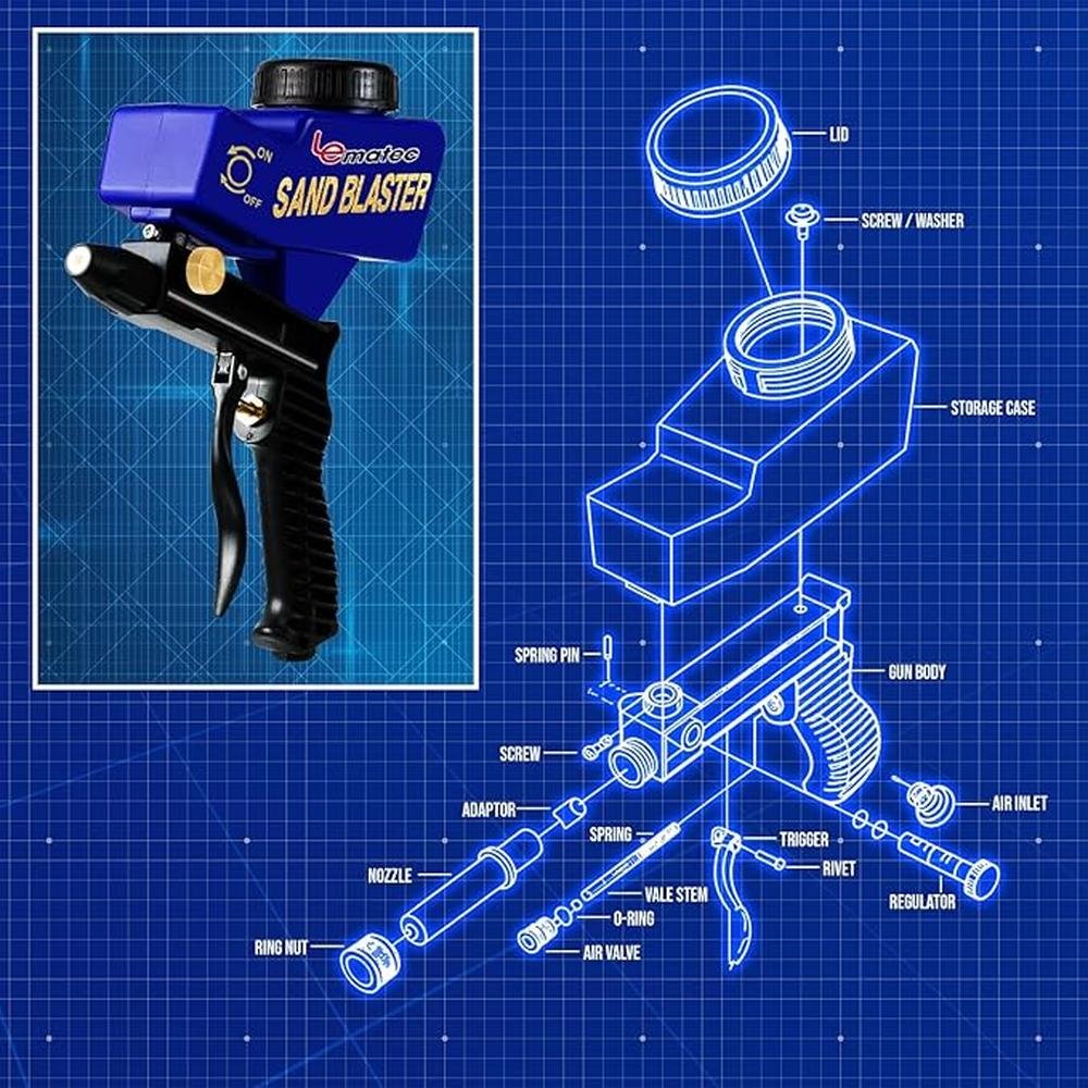 Sand Blaster | Lematec Sand Blaster Gun Kit for Air Compressor Portable Abrasive Media Blaster | Ideal for Metal Wood