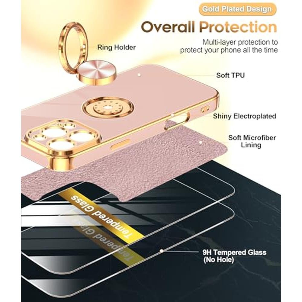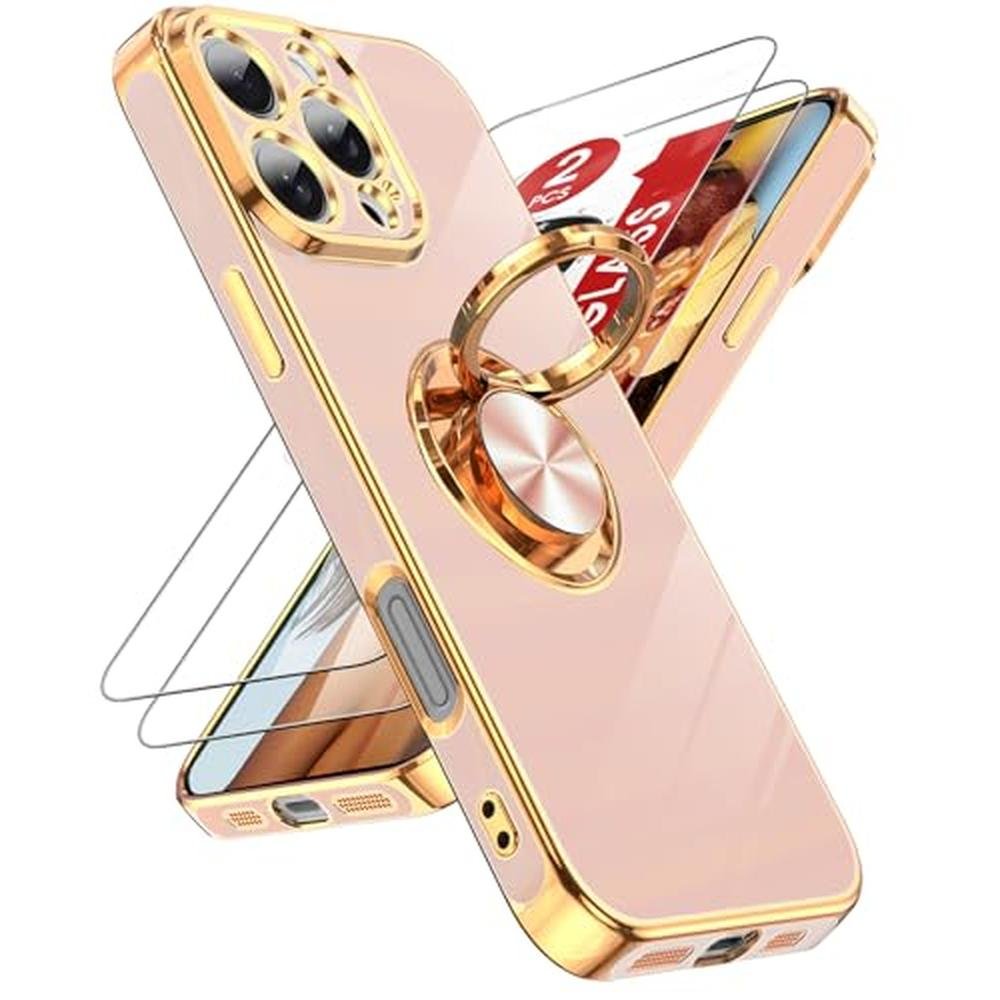 iPhone Case for 16 Pro Max | LeYi 2-Pack Tempered Glass Screen Protector | 360 Rotatable Ring Holder Magnetic Kickstand