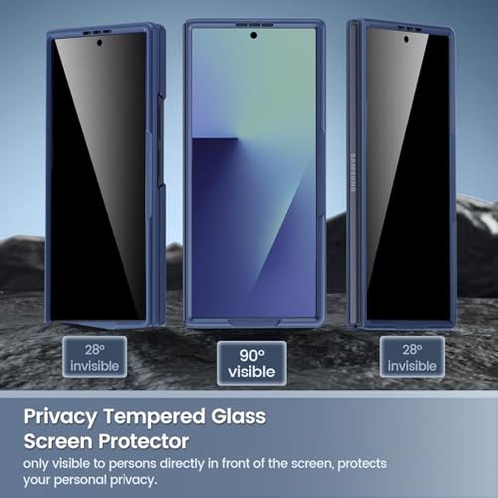 - Privacy Screen Protector: The Z Fold 7 case with privacy tempered glass screen protector protects your personal information from being seen by strangers on buses, elevators, subways, or other public places. (Note: The brightness of your phone screen will be reduced when using the privacy screen protector. You may need to turn your device display brightness up a bit when using it).
