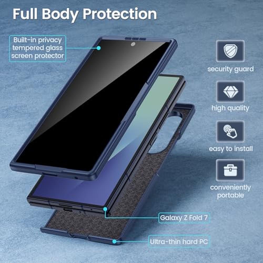 Maxdara for Samsung Z Fold 7 Case, with Privacy Tempered Glass Screen Protector & Support Wireless Charging Protective Phone Cover for Samsung Galaxy Z Fold 7 5G (Blue)