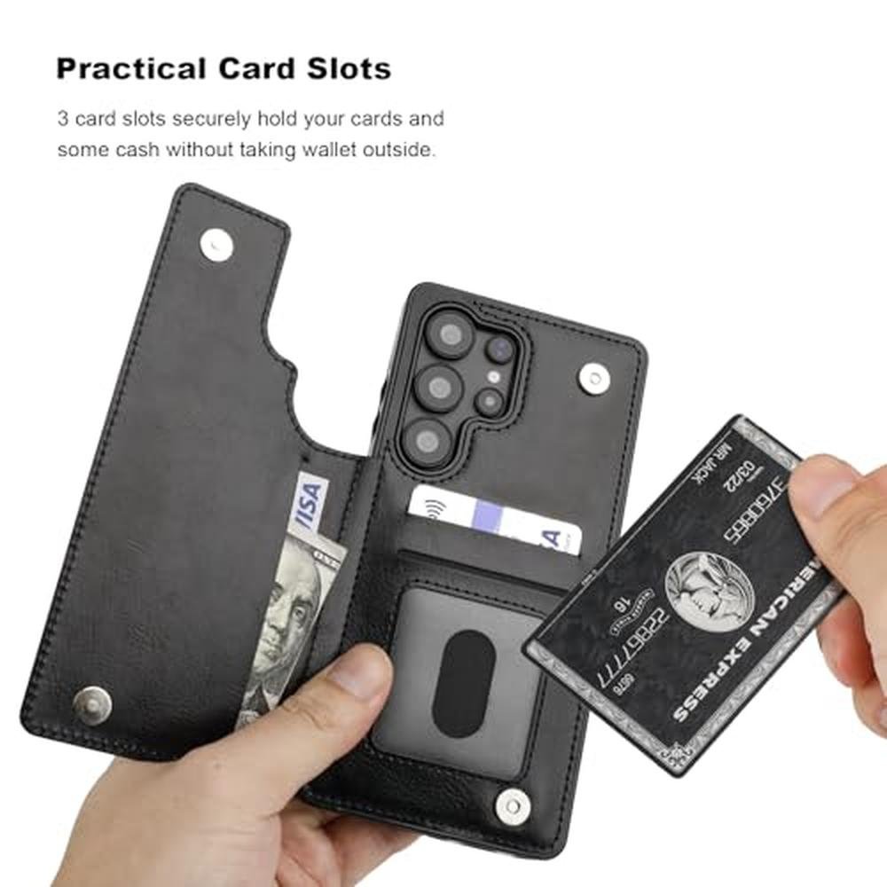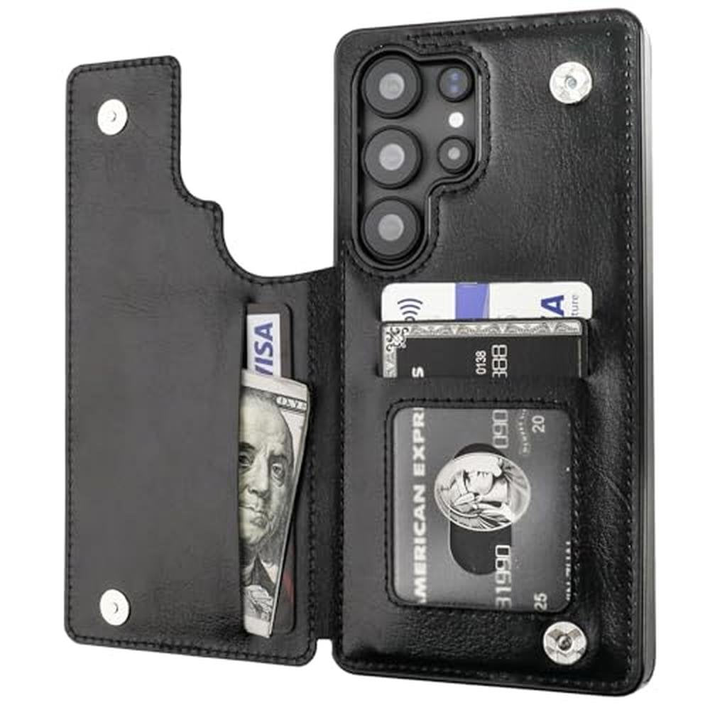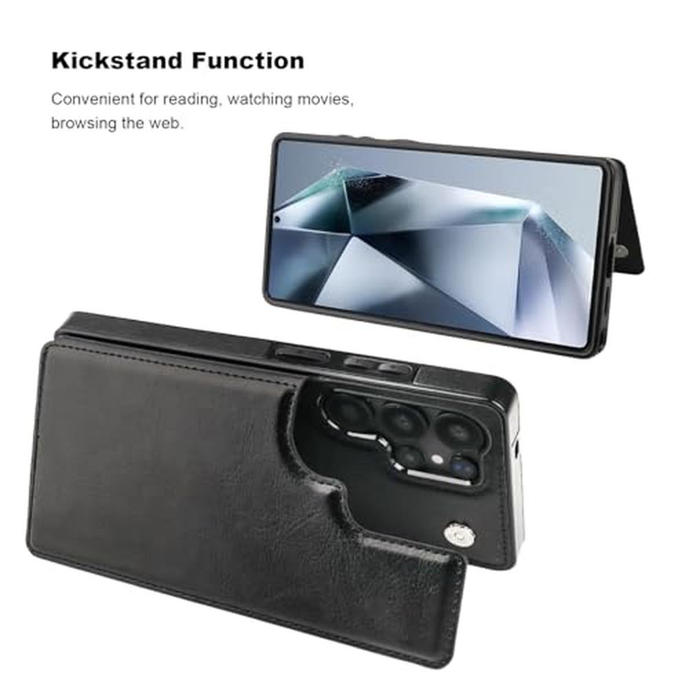 ONETOP for Samsung Galaxy S25 Ultra Wallet Case with Card Holder, PU Leather Kickstand Card Slots Case, Double Magnetic Clasp and Durable Shockproof Cover 5G 6.9 Inch(Black)