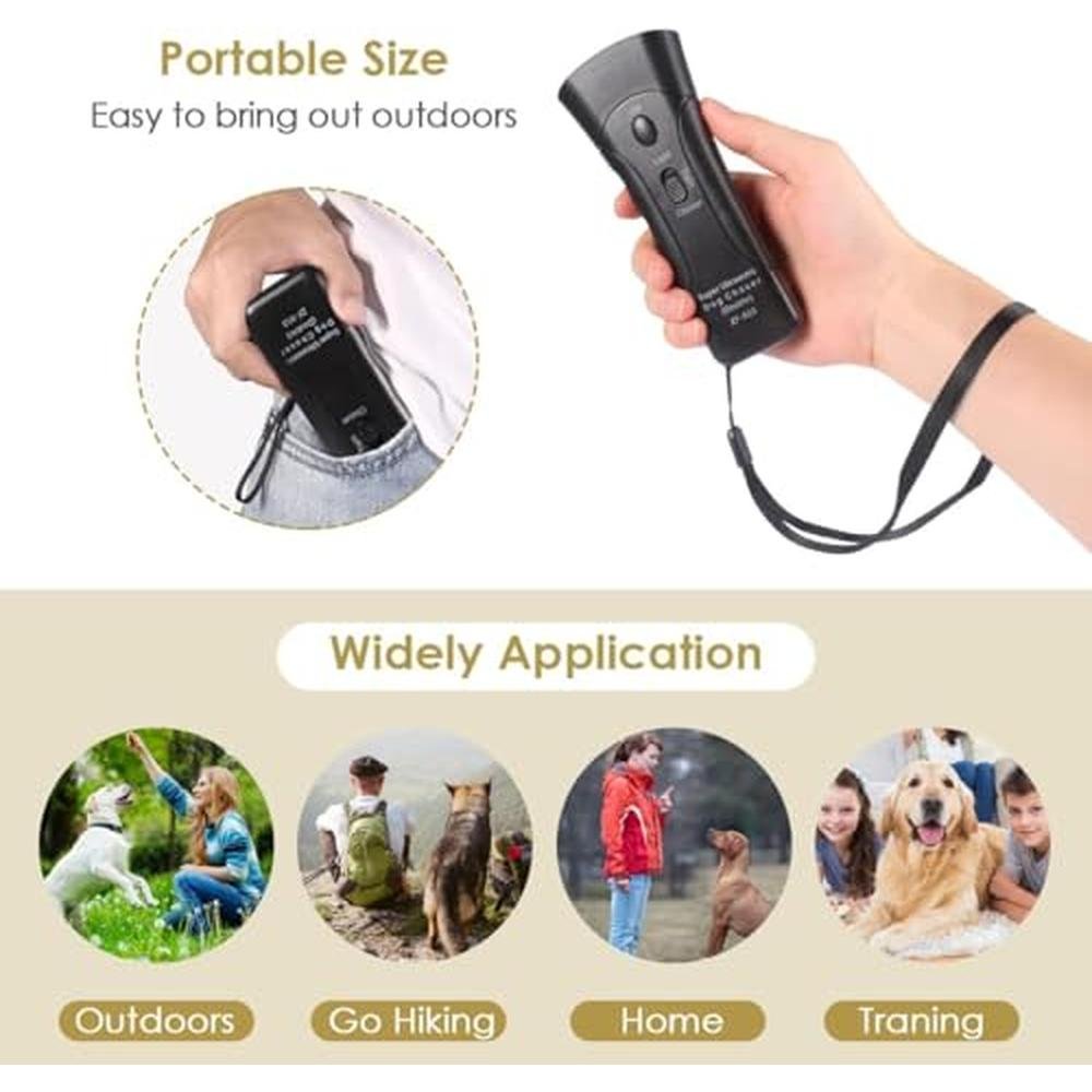 Discover a world where you can enjoy peace and quiet, free from excessive dog barking, with our handheld and portable anti-barking device. This deluxe device uses ultrasonic sound and light to train your dog, without the need for chemicals or physical contact, ensuring a dry and comfortable experience for your pet. With its long remote range of up to 32ft, you can conveniently train your dog to behave well in public and protect them from eating unsafe food. Whether you're at home, in the park, or on-the-go, our device is perfect for indoor and outdoor use, allowing you to train your dog anytime, anywhere.