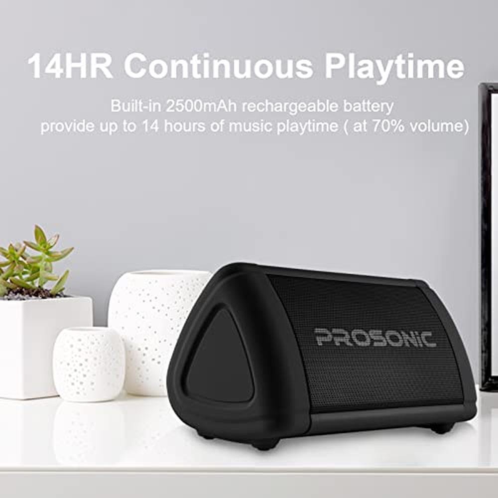Prosonic BT3 Portable Wireless Bluetooth Speaker with 10W Stereo Sound & Bass Boost -Rich Sound & Intense Bass -Bluetooth 5.0 -Microphone -IPX5 - in & Outdoor Speaker (Black)