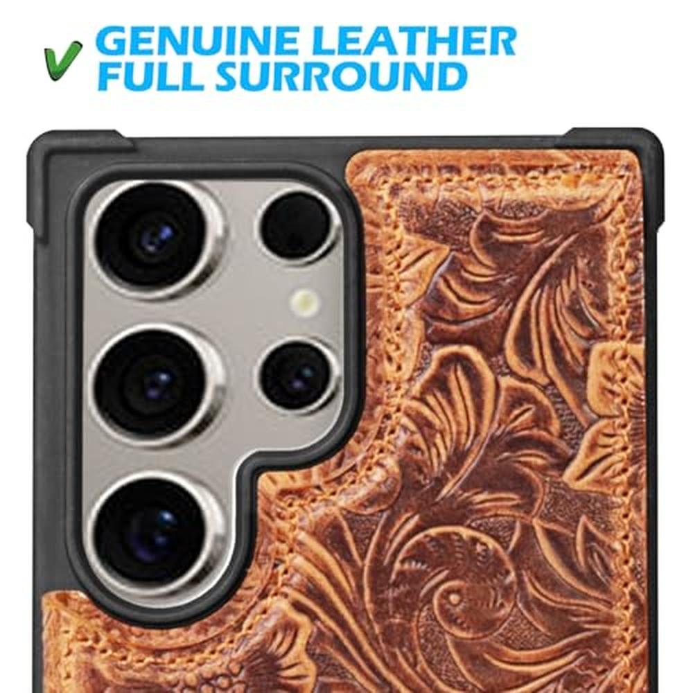 - About the genuine leather Case : This leather case is exquisitely crafted from cowhide with pressed Tang grass patterns. It has an inner lining inside, so the surface feels firm and has a strong texture, It is not soft. It becomes easier to insert the card slot as the frequency of use increases (due to the elasticity of the genuine leather).