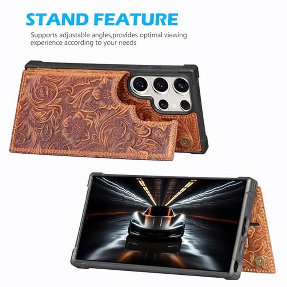 RMAWRAD Leather Case Compatible with Samsung Galaxy S25 Ultra Wallet 6.9",Genuine Leather Shockproof Anti-Fall Case, Flip Cover with Card Slot, Double Magnetic Buckle,Kickstand Durable Brown