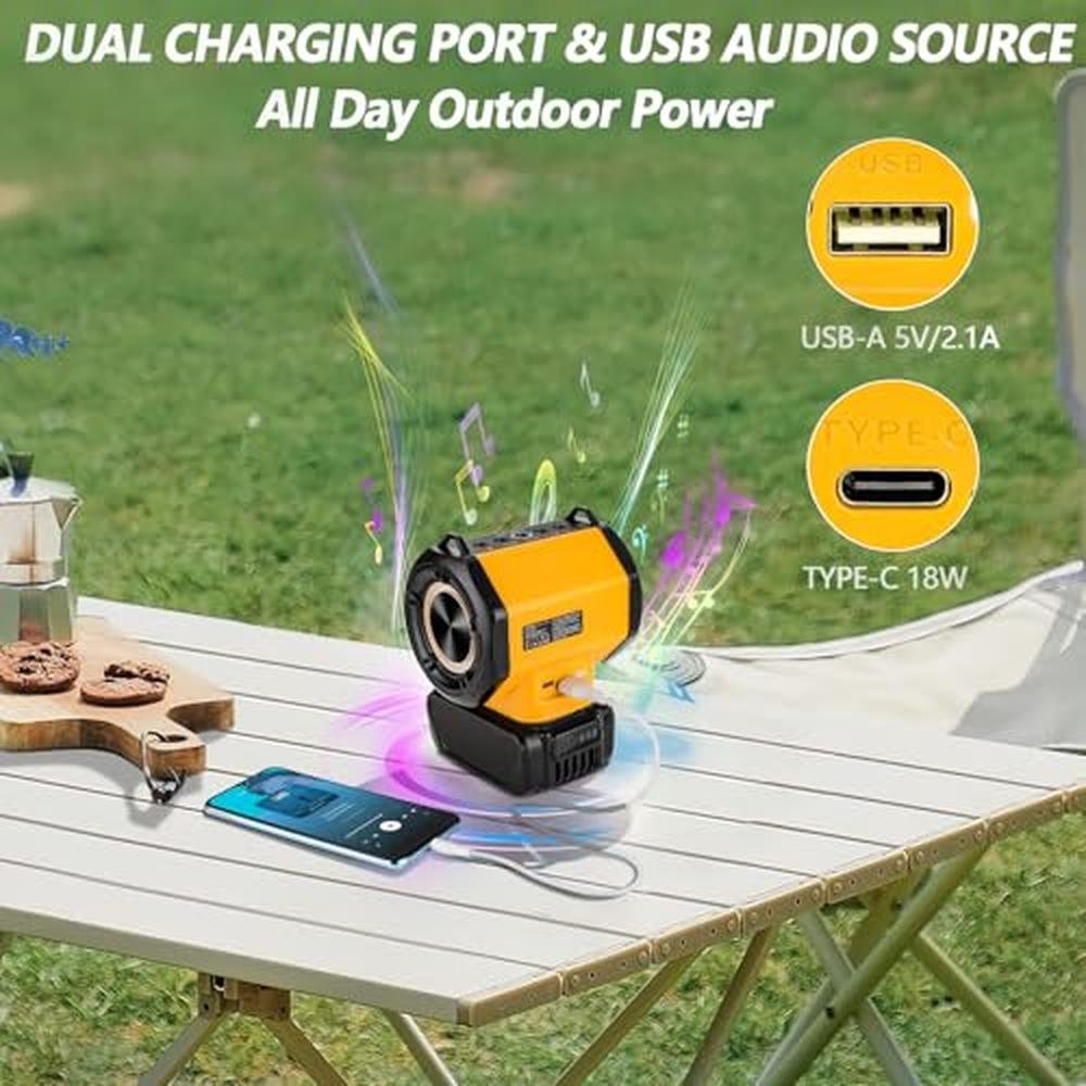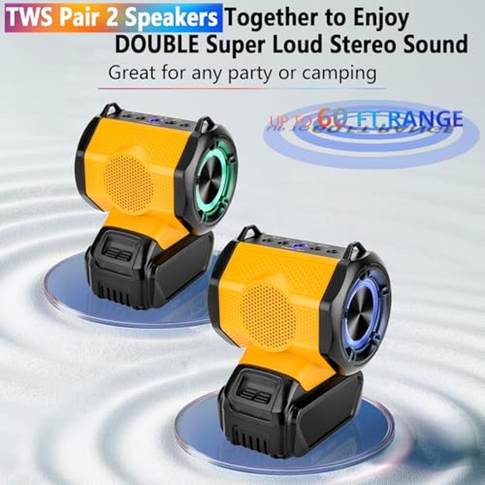 WaxPar Bluetooth Speaker Compatible with Dewalt 20V Battery, 20V Portable Mini Speaker Cordless 20W Loud True Wireless Stereo HD Sound, TWS Pairing, 5.3 Bluetooth, 24H Playtime