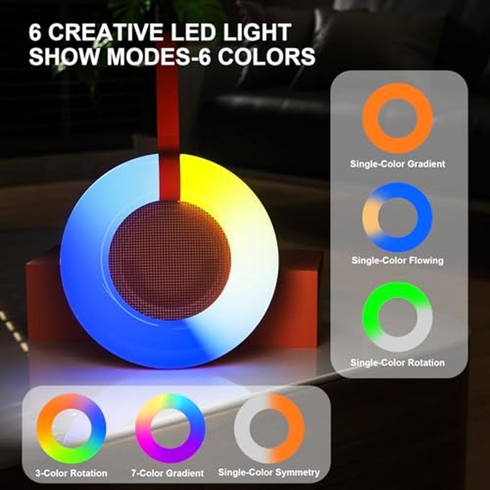 • RGB COLORFUL LIGHT SHOW: The standalone RGB lighting system is designed for night events with 7 light colors and 6 light modes, this speaker adds an extra visual enjoyment to your listening experience.While you enjoy music, gradient lights would truly bring you party atmospher. Using night theme light, you could just open it as a led light without use it to play music. Our Creative LED Bluetooth Speaker can be as a gifts for men, women, your friends or kids.