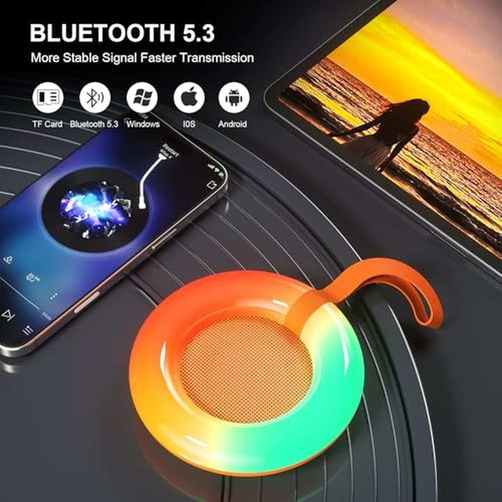 Xinborry Bluetooth Shower Speaker,IPX7 Waterproof Speaker with Dynamic LED Light,Portable Bluetooth Speakers,Floating, True Wireless Stereo for Outdoor/Pool/Beach,BT5.3/TF-Card,Ideal Gifts(Orange)