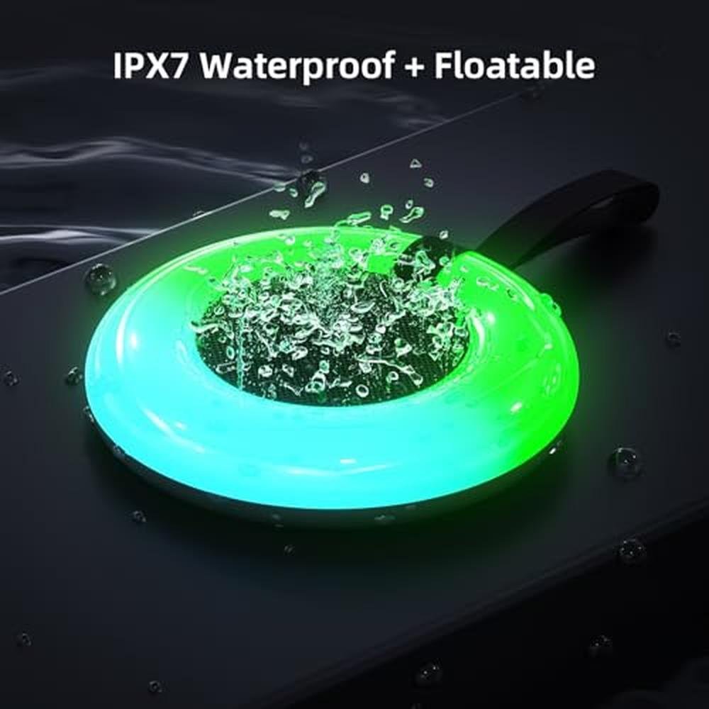 Xinborry IPX7 Waterproof Speaker with Dynamic LED Light,Bluetooth Shower Speaker,Portable Bluetooth Speakers,Floating, True Wireless Stereo for Outdoor/Pool/Beach,BT5.3/TF-Card,Ideal Gifts(black)