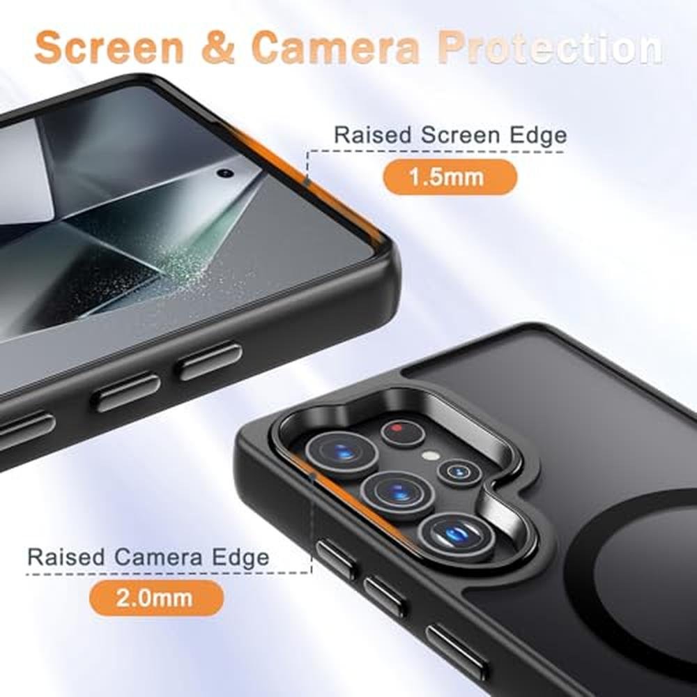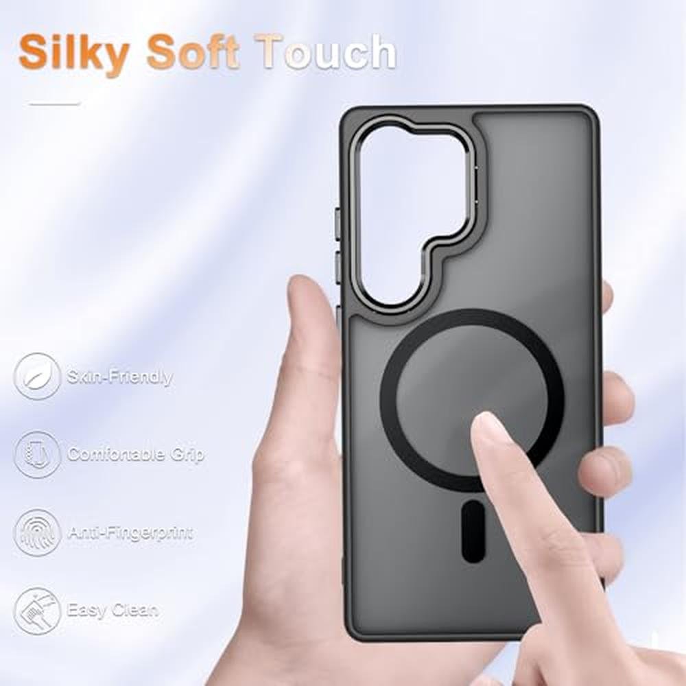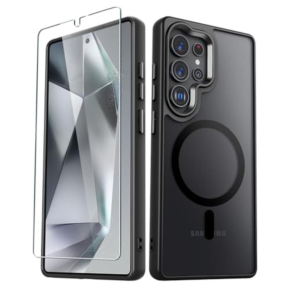 YENAPOON for Samsung Galaxy S25 Ultra Case, Matte Magnetic Phone Case with 1 Screen Protector, Support for Magsafe, Translucent Frosted Shockproof Protective Cover for Samsung Galaxy S25 Ultra, Black