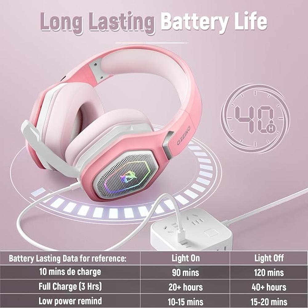 - Our gaming headset boasts a long-lasting battery life, providing up to 40 hours of continuous use, and features fast charging capabilities to quickly top off your battery, ensuring that you can game uninterrupted for hours on end.