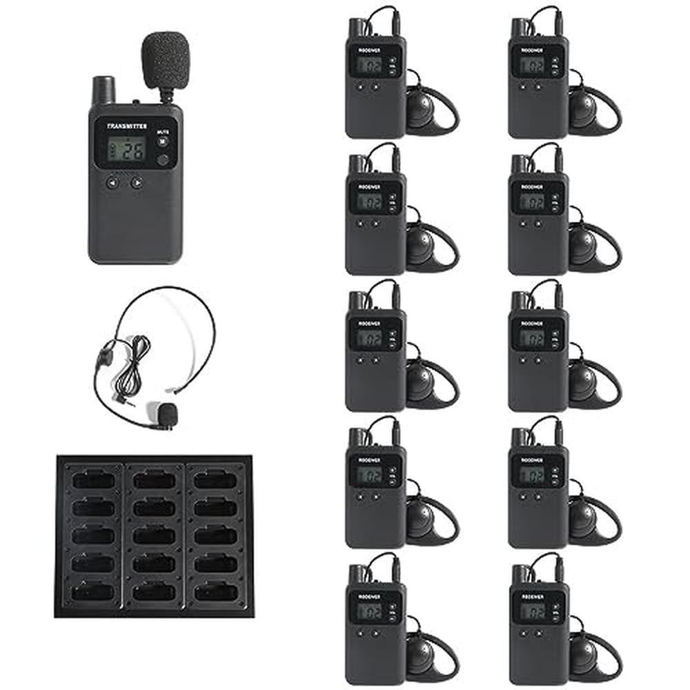 - High-quality wireless tour guide system with 1 transmitter and 10 receivers for seamless communication