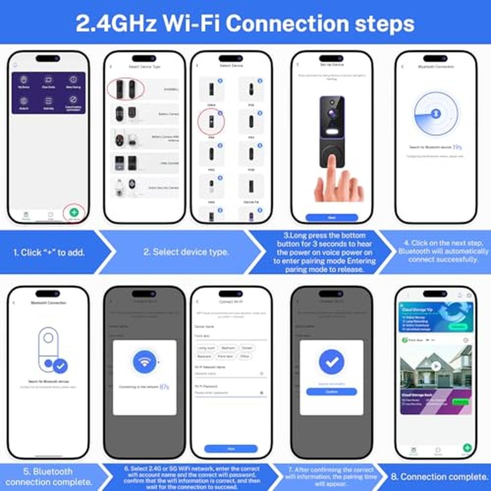 Immerse yourself in enhanced home security with the ClipBlur 1080p Wireless Video Doorbell Camera, expertly designed to deliver crystal-clear video and intelligent features. As a premier choice for those seeking a reliable and high-end doorbell solution, this device stands out with its superior color night vision, allowing you to see visitors clearly even in low-light conditions. The ClipBlur doorbell camera also features 2-way talk, enabling real-time communication with whoever is at your door, and advanced AI human detection, which sends alerts to your smartphone or tablet via the ClipBlur doorbell camera app. For seamless connectivity, it operates on 2.4G WiFi, and its battery-powered design offers unparalleled convenience. With the ability to install the doorbell receiver in multiple rooms, you'll never miss a visitor or delivery. The color night vision captures every detail clearly, from dawn till dusk, even in complete darkness. Intelligent alerts powered by AI ensure you receive notifications only when people are detected, eliminating distractions from pets or cars.