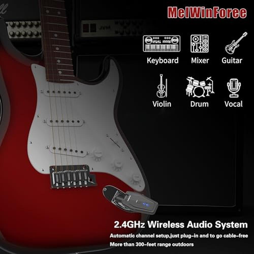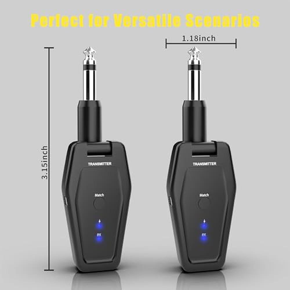 • Versatile Usage and Compatibility: Our wireless transmitter receiver is designed for various applications, including instrument teaching, street performances, and more. With its universal 6.35mm audio interface, it's compatible with electric guitars, bass guitars, and other electric instruments.