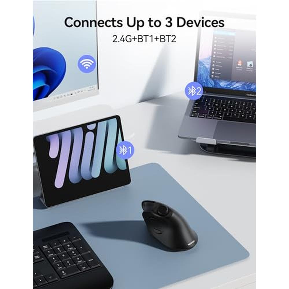 • One-Click Multi-Device Control: This Bluetooth mouse enables seamless switching across 3 devices with advanced 2.4G + Dual Bluetooth 5.0 connectivity. Easily toggle between your computer (via USB-A receiver), smartphone, and tablet with just one clickno need for repeated pairing. Perfect for multitaskers who work, browse, and stream without interruption.