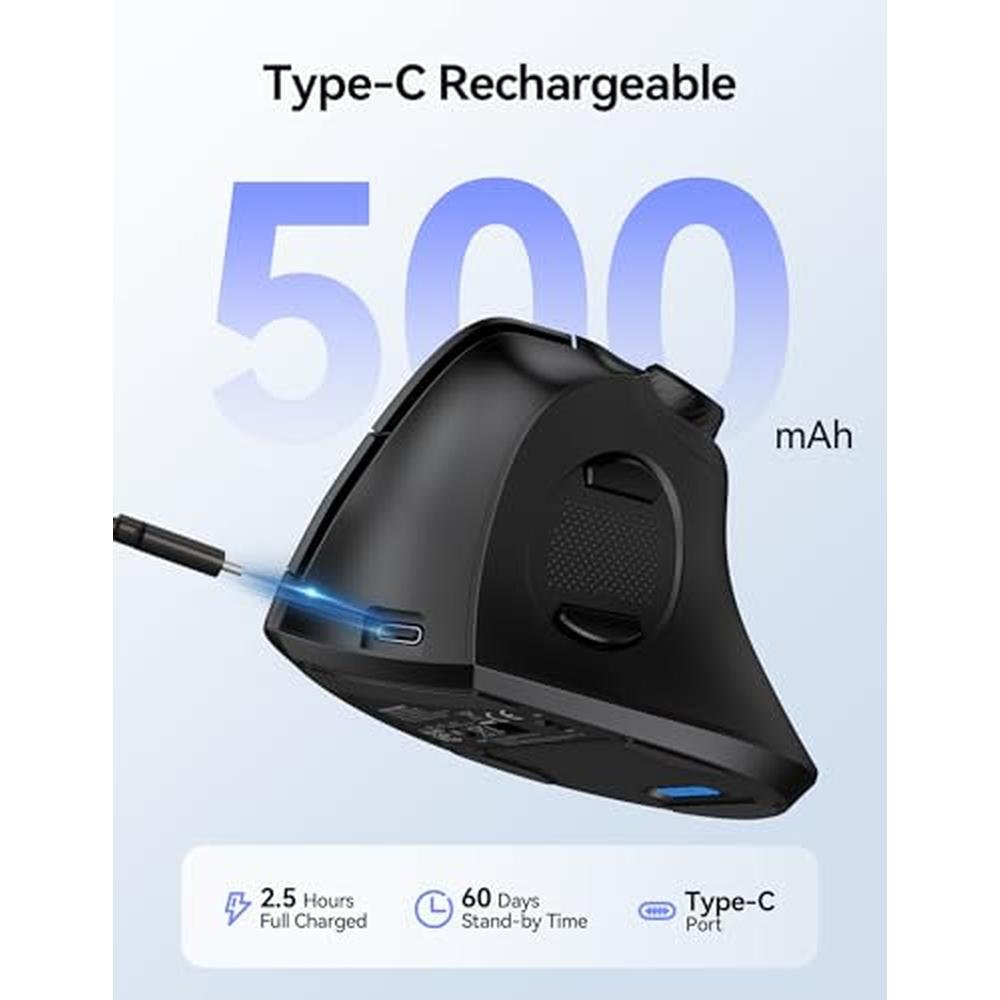 • Fast Charging & Long Battery Life: Enjoy up to 60 days of use on just 2.5 hours of charging with our long-lasting rechargeable wireless mouse. The 500mAh battery and Type-C fast charging (cable included) eliminate the hassle of battery swaps or interruptions.