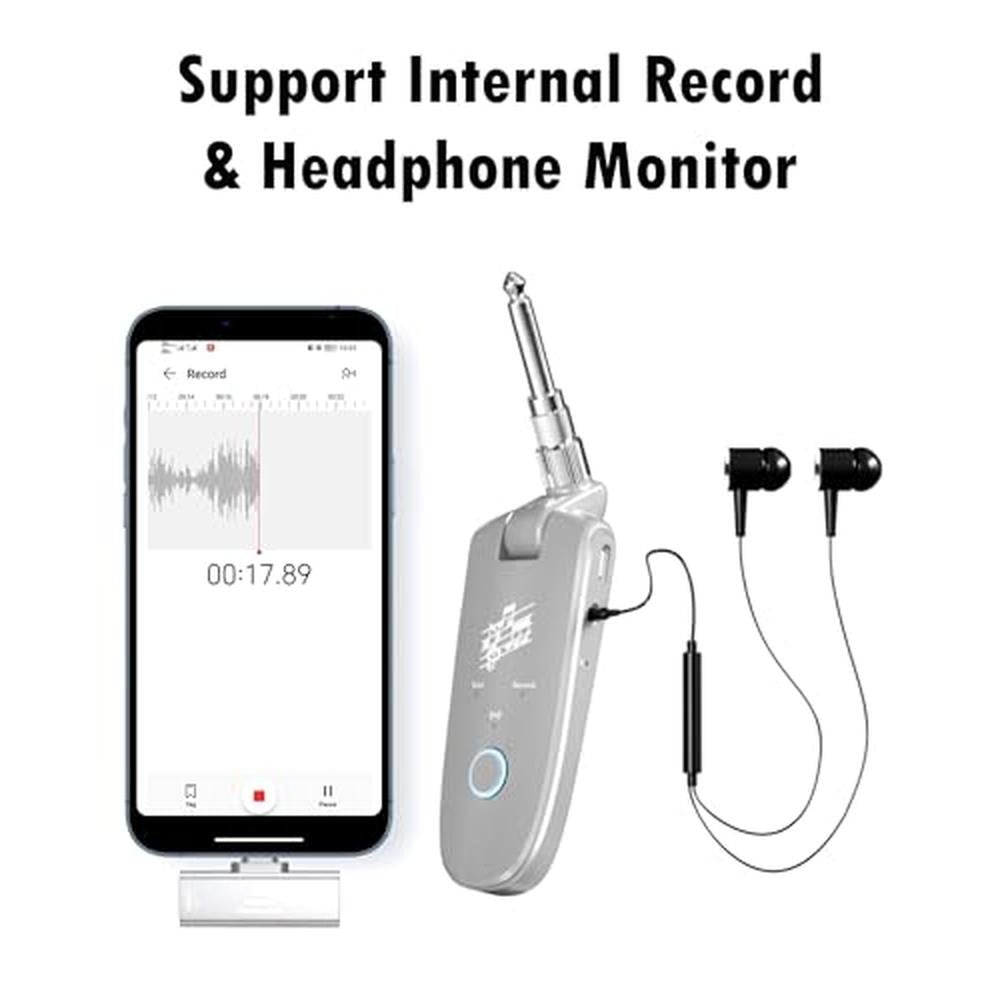 - Internal Recording Function&Headphone MonitoringThe Temvox Wireless Guitar system features an internal recording function, allowing you to effortlessly record music without requiring additional recording devices. The built-in headphone monitoring function lets you closely monitor your music as you play. You have the flexibility to adjust both the volume and reverb settings.