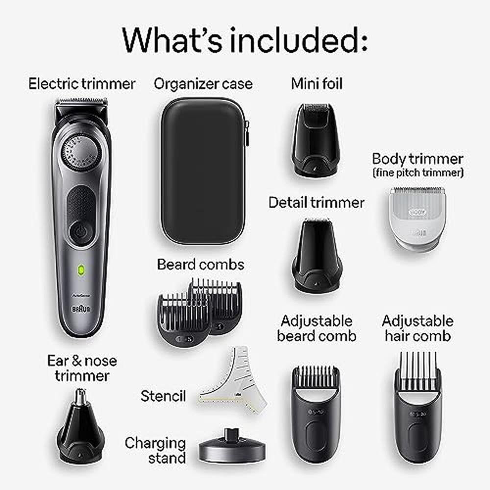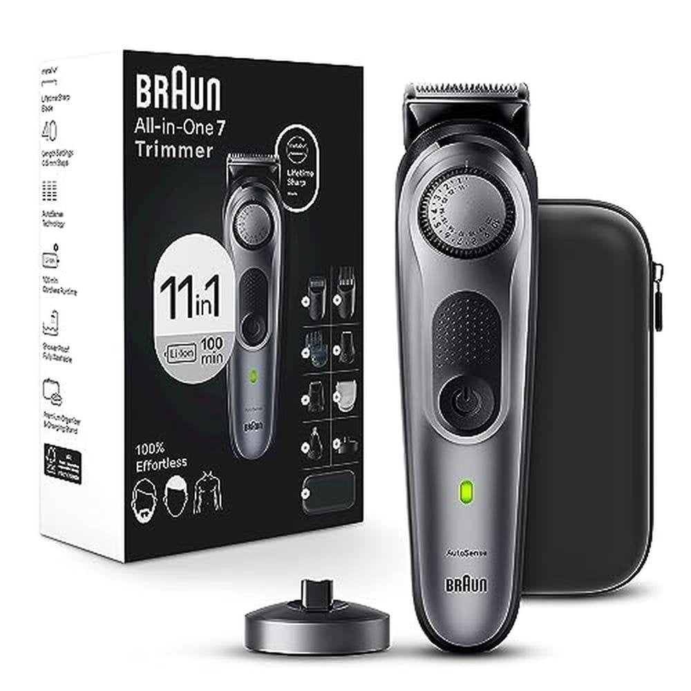 Unlock a world of premium grooming with the Braun All-in-One Men's Shaving Kit Series 7 7420, featuring 11 versatile attachments for trimming, shaving, and styling. Experience smooth, precise cuts and effortless trimming with its powerful motor and precision cutting technology. Perfect for men who want to look and feel their best, this all-in-one trimmer is a game-changer in personal grooming.
