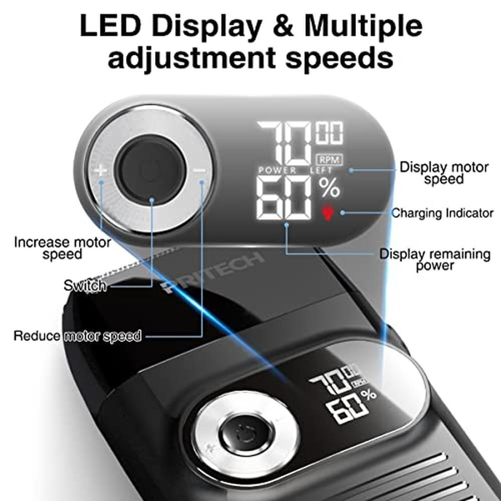 • 3-ADJUSTABLE SPEED WITH LED DISPLAY The LED digital display visually displays the speed and remaining power. You can control the speed of shaving, adjust it according to the thickness and length of your hair or beard during the cutting.Travel lock (press and hold the POWER button for three seconds)