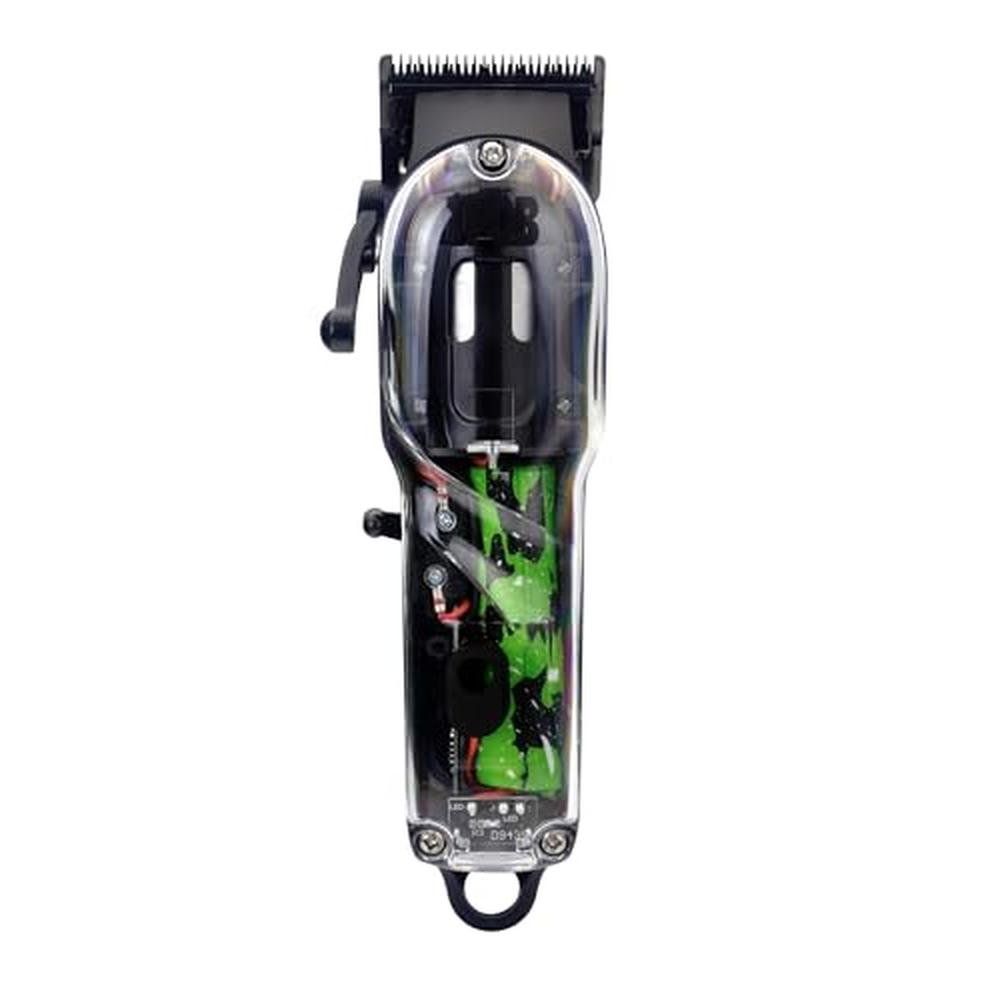 Black Diamond Carbon Fade Blade, that stays cool and rust free giving you the closest precision cut possible. The SLIME 2 is for home or Barbershouse with Diamond Carbon Blade Technology, for a sharper cut and a smoother finish, with faster feeding and smoother blending. Our new super quiet boxed motor comes with 6800 rpm of power and is whisper quiet. With a click lever for different lengths to easily blend any kind of hair. Finished in perfect in hyid green with a see through front and green matte back casing. This machine is perfect for home haircuts, beard shaving, professional barbers haircuts and for beginners.