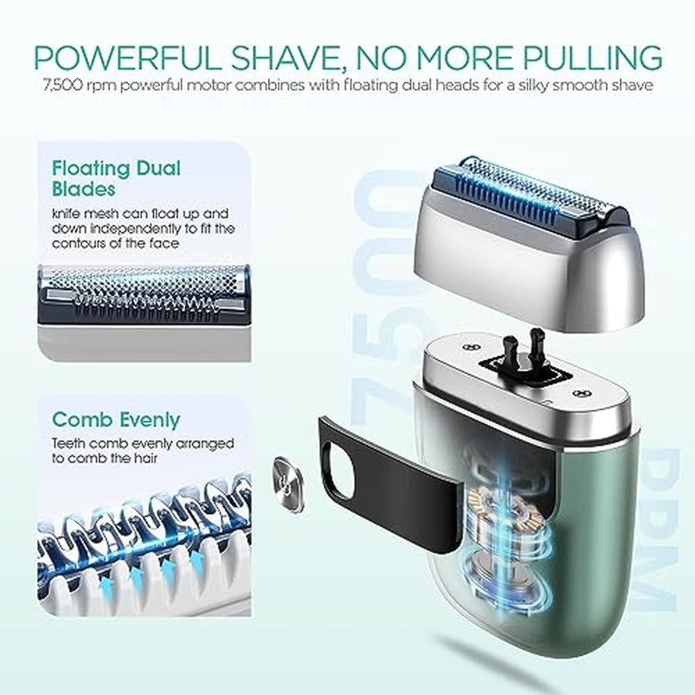 VOYOR Foil Shaver 2 in 1 Double Shavers for Men,Portable Electric Razor with Rechargeable Foil Razor Multifunction Grooming Barber Shaver IPX6 Washable Travel Shavers ER300 (Green)