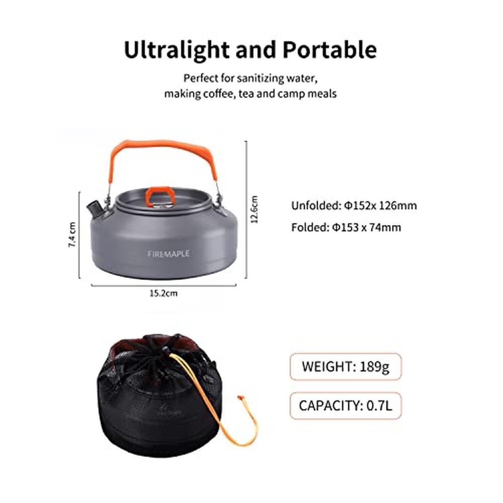 Camping Fire Pit | Fire-Maple Feast T3 Portable Teapot | Lightweight Aluminum Kettle for Hiking and Camping