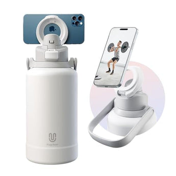 Experience the ultimate in hydration with our premium 64oz insulated magnetic water bottle, expertly designed for gym enthusiasts and outdoor adventurers. This high-end stainless steel vacuum flask is engineered to keep drinks cold for an impressive 24 hours, making it an ideal water jug for anyone seeking a reliable hydration companion. With its innovative MagSafe compatible phone holder, you can effortlessly attach your phone to the bottle, allowing you to track your fitness goals or navigate through trails without having to hold your device. Our 64oz water bottle is equivalent to approximately 1.9 liters or 3.4 pints of water, making it a superior option for those who want to drink plenty of water throughout the day. Whether you're looking for a 64oz water bottle with a straw or a top-tier water jug for gym and outdoor activities, our product is the perfect choice.