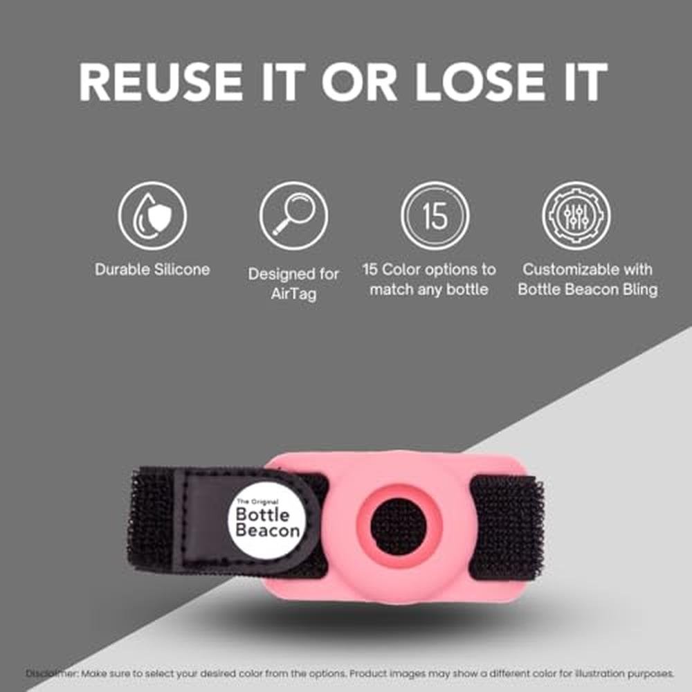 Experience the ultimate in hydration convenience with the Bottle Beacon Water Bottle Tracker Strap, expertly designed to work in harmony with Apple AirTag. This innovative strap is compatible with an array of premium brands, including Owala, Stanley, Hydro Flask, Yeti, and Nalgene, ensuring that your favorite water bottle remains by your side at all times. Crafted in a stylish pink hue, the Bottle Beacon strap seamlessly blends functionality with fashion, making it an indispensable accessory for your daily hydration needs. With its intuitive design, attaching your Apple AirTag to the strap is effortless, allowing you to track your bottle's location with ease using your iPhone. Bid farewell to the frustration of lost bottles and embrace the peace of mind that comes with the Bottle Beacon - the pinnacle of bottle tracking solutions. Whether your adventures take you to the gym, office, or the great outdoors, this strap is the perfect companion.