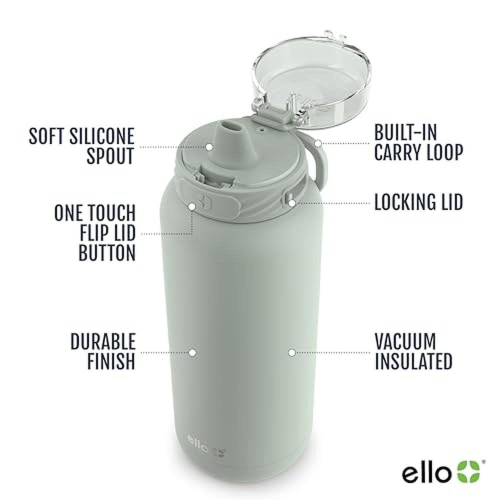 Experience the pinnacle of hydration with the Ello Cooper 32oz Stainless Steel Water Bottle, expertly designed with a convenient straw and carry handle for effortless sipping on-the-go. This premium, double-walled, vacuum-insulated metal water bottle is engineered to keep your drinks hot or cold for hours, while the leak-proof locking lid with soft silicone spout ensures spill-free enjoyment. Crafted from high-quality, BPA-free materials, this reusable water bottle is not only eco-friendly but also safe for daily use. Whether you're seeking a reliable Ello Cooper water bottle or a durable alternative to disposable bottles, this 32oz sage-colored bottle is the ultimate choice. With its sophisticated construction and advanced insulated design, it's ideal for discerning outdoor enthusiasts and individuals who demand the finest, high-performance products.