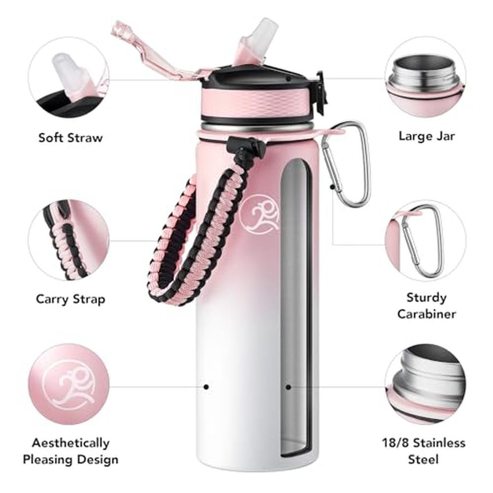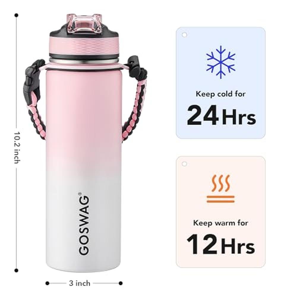 Experience the ultimate in hydration with the GOSWAG Insulated Sports Water Bottle, a premium insulated water bottle designed for outdoor enthusiasts. Made from high-quality stainless steel, this 24oz bottle features double-wall vacuum insulation, keeping drinks hot or cold for hours. The versatile design comes with two interchangeable lids - one with a straw and one without - making it perfect for various insulated water bottle needs. The paracord handle provides a secure grip, while the durable construction ensures it can withstand rough handling. Whether you're looking for an insulated water bottle for kids or a reliable companion for your own adventures, the GOSWAG Insulated Sports Water Bottle is an excellent choice. Ideal for gift giving on holidays, for your relatives, friends, significant other or child, it is the perfect selection. Item list: 1x insulated water bottle, 1x straw lid, 1x wide-mouth lid without straw, 1x packaging box. Vendor: Deliverable in 10+ Business Days. Variant SKU: BMB0CP79NKW4
