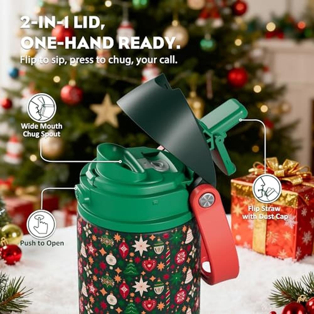 Experience the ultimate in hydration with the POWCAN 24 oz Christmas Insulated Water Bottle, expertly designed for outdoor enthusiasts, students, and sports lovers. This premium stainless steel water bottle features a innovative 2-in-1 push-button spout and quick-flip straw, making it effortless to drink on-the-go. The leakproof design ensures spills are a thing of the past, and its compact size fits perfectly in car cupholders. Whether you're looking for a water bottle for hiking, school, or everyday use, this insulated water bottle is a superior choice. With its durable construction and festive Jingle Joy design, it's an ideal gift for dad, husband, or college students.
