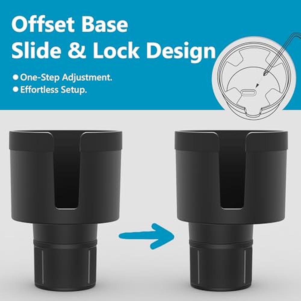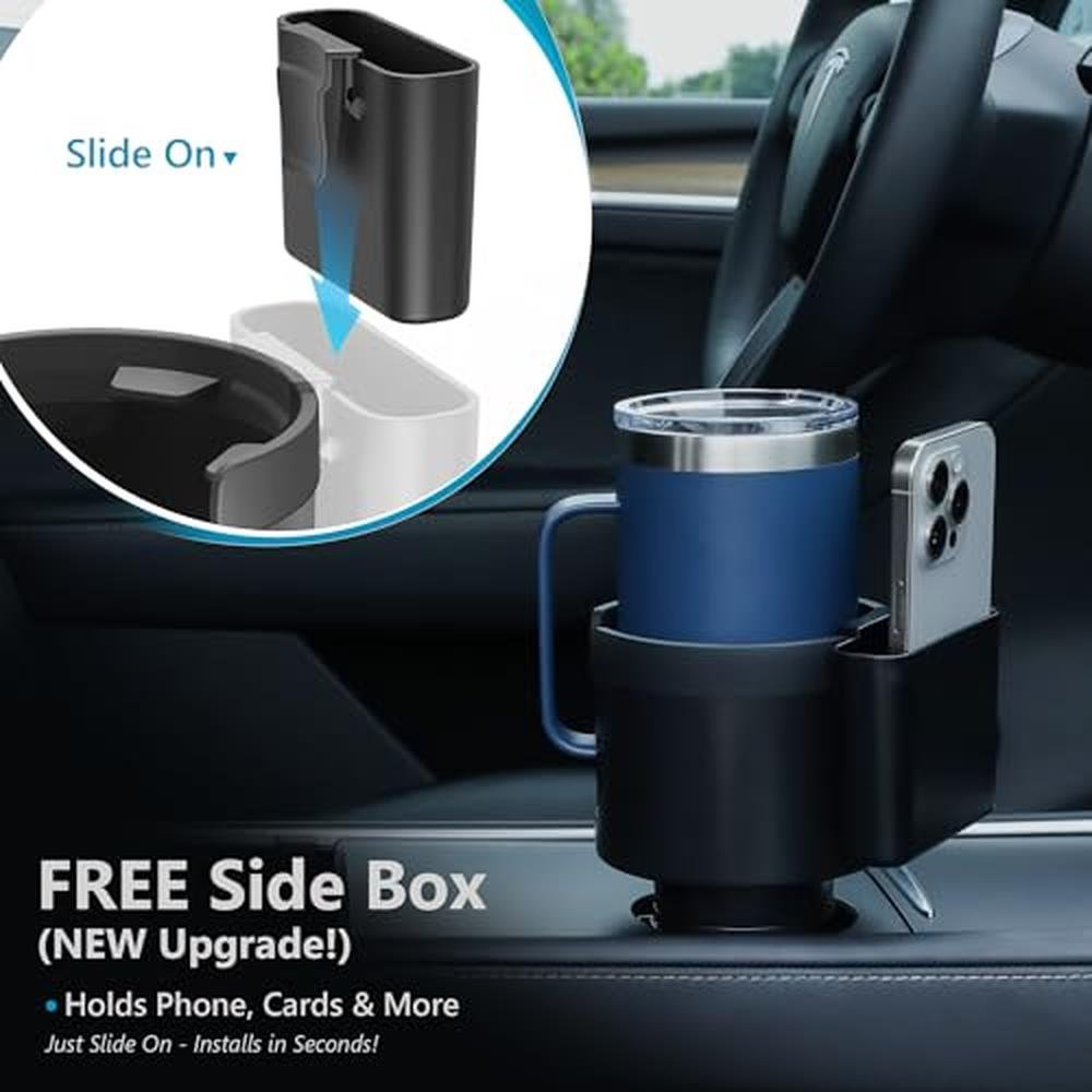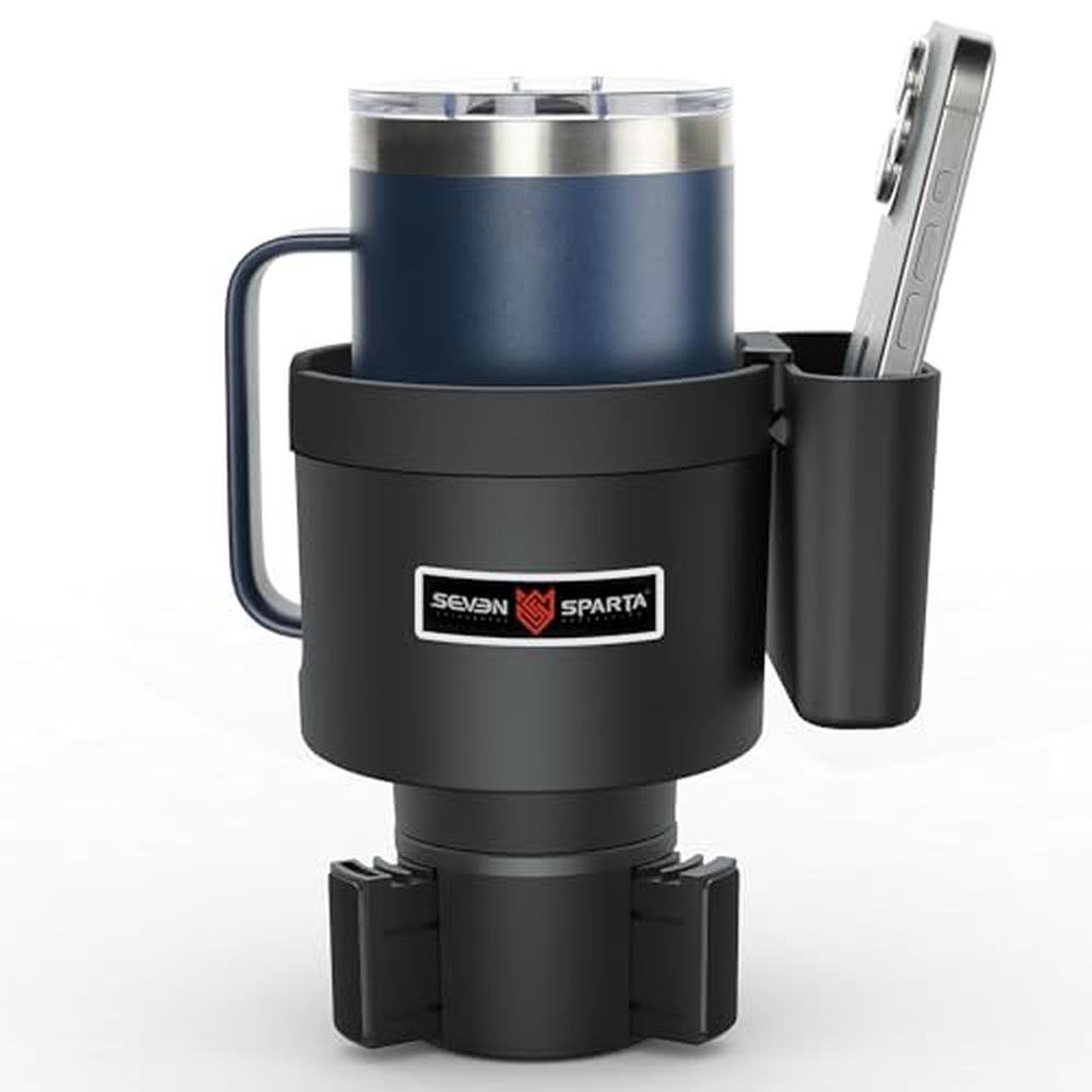 WHY CHOOSE SEVEN SPARTA UPGRADED 3-IN-1 CUP HOLDER EXPANDER? EXPAND DRINKS, ORGANIZE ESSENTIALS & ROUTE CABLES ALL IN ONE! Tired of cramped cup holders and messy consoles? Our upgraded expanders offset base frees crucial space for dual bottles, while the built-in side storage box keeps your phone, cards, and keys secure. Plus, the bottom cable opening ensures tidy charging access the ultimate fix for drivers craving order! DUAL FUNCTION DESIGN: DRINK SECURITY + SMART STORAGE 1 UNSHAKEABLE GRIP FOR GIANT BOTTLES: Thickened base + rubber tabs firmly secure 3.4"-3.8" wide bottles 2 ORGANIZED SIDE STORAGE WITH CABLE ACCESS: Dedicated box holds phones/cards/keys. Features a BOTTOM CABLE ROUTING OPENING connect your charger without clutter! 3-IN-1 SPACE OPTIMIZATION Offset Base Frees Console Space: Expands 2.5"-3.75" factory holders, creating room near gear shifts/dash controls. Quick-Release Deep Slot: Wide design allows easy cup/bottle removal; deep base provides superior balance even for tall 20-40oz bottles. Instant Access Side Box: Essentials stored visibly no more digging! PRECISE FIT GUIDE Fits Most Vehicles: Cars, trucks, RVs, boats. *(Avoid: Slanted/edged holders >2.75" deep, square holders, compact cars with low-set holders near handbrakes)* Perfect for 3.4"-3.8" Bottles/Mugs: Compatible with Yeti (20/26/30/36oz Ramblers, 10/24oz Mugs) | Hydro Flask (32/40oz) | Owala (24/25/32/40oz) Not For: Small cans | Cups <3.4" or >3.8" | Tapered-bottom bottles (>3.7")Specifications & Details