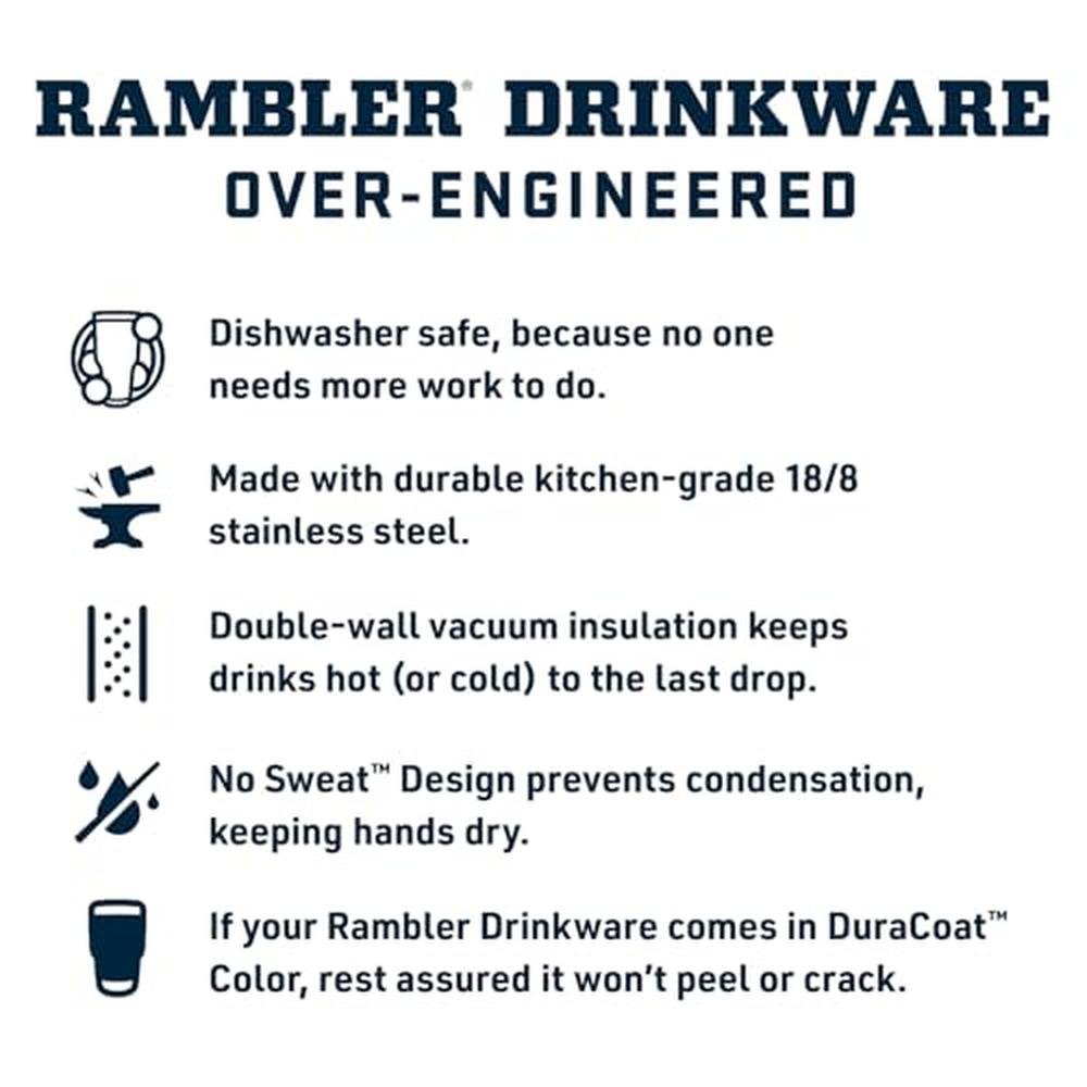 This Rambler Bottle is 100% Leakproof and perfect for when you need a drink for the road but won't be off the grid for too long. It's the go-to bottle for an executive afternoon hike, wetting a quick line, or solo journey that might include a detour. Made of high-quality 18/8 stainless steel, built with cutting-edge double-wall vacuum insulation, and always ready with the innovative No Sweat Design, the Rambler 26 oz. Bottle is a superior drinking option for your personal outdoor exploration.