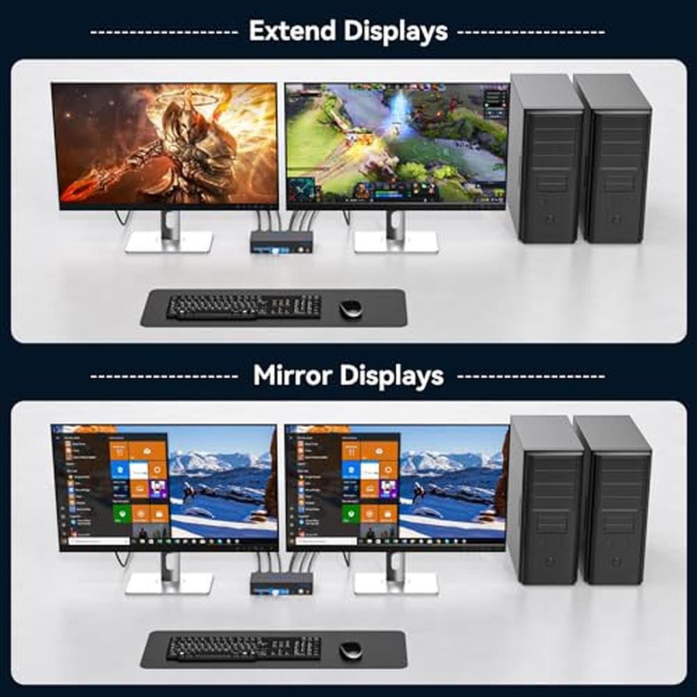 4K@144Hz Displayport KVM Switch 2 Monitors 2 Computers USB3.0 KVM Switch Dual Monitor for 2 Computers Share 2 Monitors and 4 USB Devices Support Extended/Copy Mode with Desktop Controller
