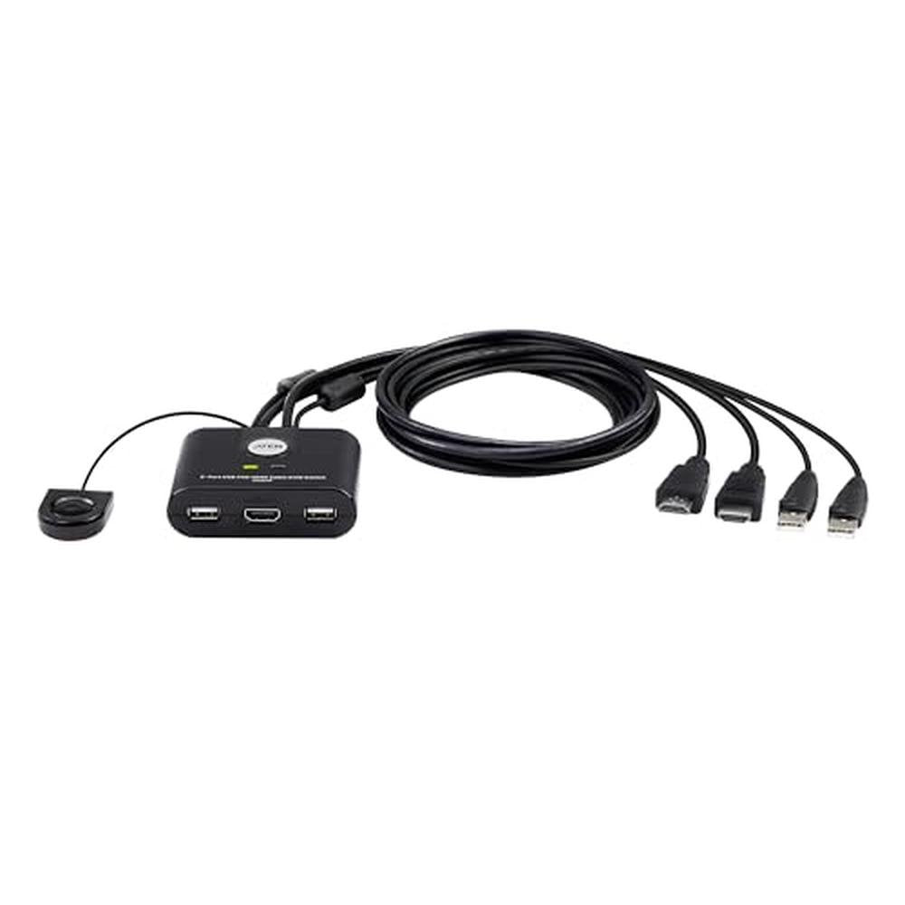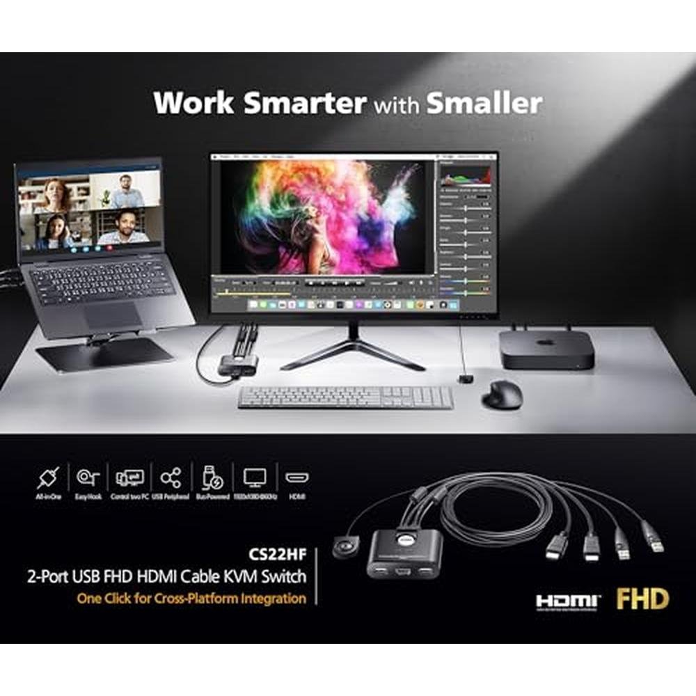 ATEN CS22HF 2-Port USB FHD HDMI KVM Switch Full HD 1080p, 2 Computers 1 Monitor, USB Peripherals, Easy Hook Design, Push-Button Remote, Plug-and-Play, Multi-Platform (Windows/Mac/Linux)