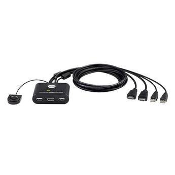 Get the ATEN 2-Port CS22H HDMI Switch if you want a smart-looking, neat and tidy work environment! ATENs patented all-in-one design Cable KVM Switches eliminate the bother of connecting multiple cables by consolidating keyboard, video and mouse cables into one, and building that cable right into switch with the HDMI cable The ATEN 2-Port CS22H KVM switch with audio cable or HDMI keyboard mouse video (KVM) switch dual monitor with can instantly access two computers with a USB and HDMI console while offering superior video quality up to 4K DCI (4096 x 2160 at 60Hz), bringing users maximum convenience and optimum visuals. audio cable not included When users want to switch between the computers, press the built-in remote port selector to enjoy intuitive operations. Moreover, the 2 Port USB HDMI KVM Switch CS22H supports USB peripheral sharing, easily integrating data and ensuring uninterrupted data transmission monitor switch or monitor switcher for 2 computers swit Its compact and bus-powered design provides an efficient installation without bulky cable setups, and the newly-designed hook allows users to place the CS22H a 2 port hdmi kvm switch or you can use as KVM Switch 2 computers, and wherever they want to keep desktop tidy and well-organized. This plug and play switch is ideal for people who need quick control to multitask between two computers at the desktop in any environment. Remote Control Port Selector One USB keyboard, mouse and one HDMI monitor control two HDMI computers Superior video quality up to 4K DCI (4096 x 2160 @ 60Hz) Remote Control Port Selector computer selection HDMI compliant; HDCP compliant Supports USB hot-plugging The console USB ports can be used for USB peripheral sharing* Multiplatform support Windows, Mac and Linux Hook design for space-saving and organized workstation Plug and play Bus-powered no external power adapter required