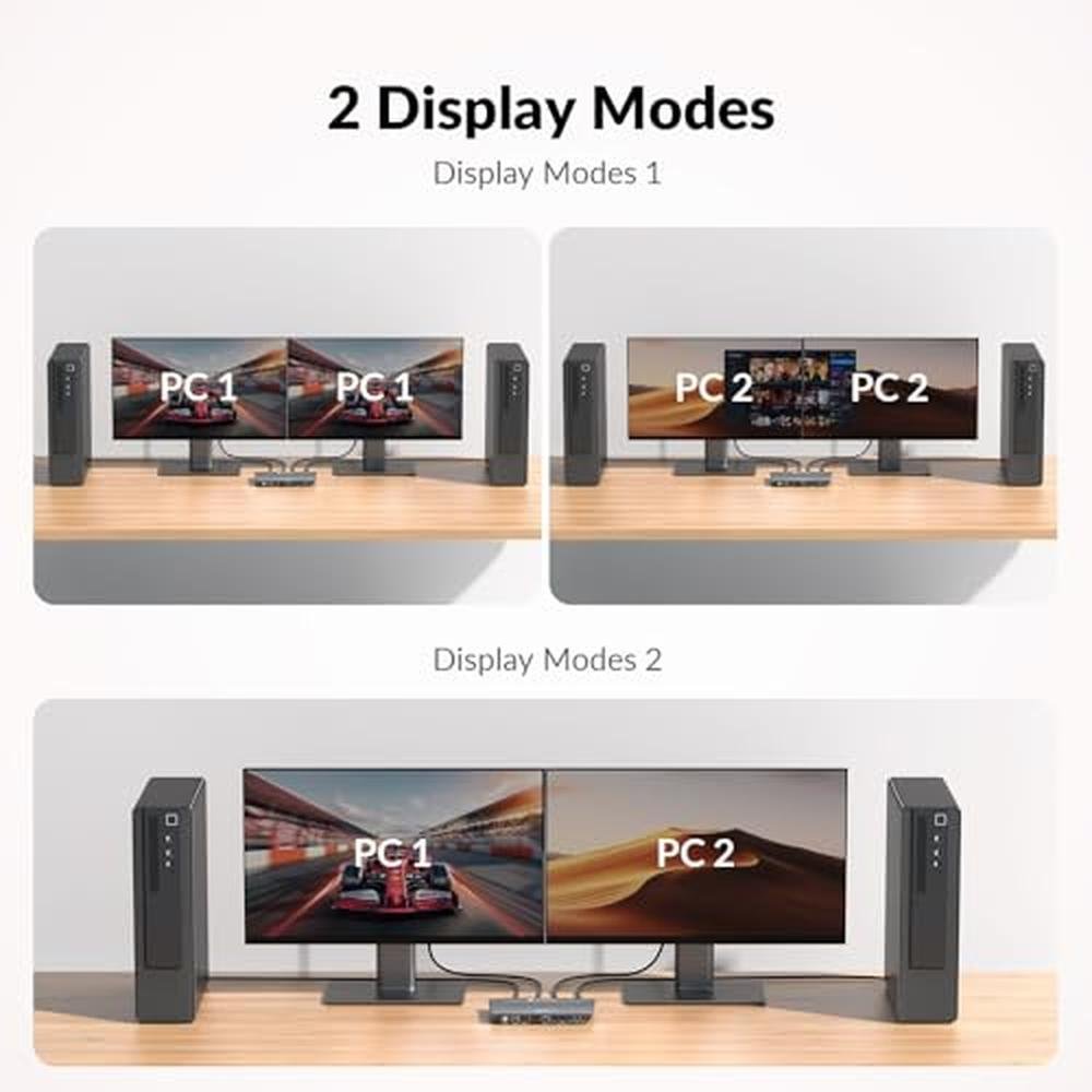 - 21 Dual Monitor KVM Switch: Control two PCs with a single set of keyboard, mouse, and dual monitors in extended or mirror mode to boost productivity for office tasks, gaming, or learning.