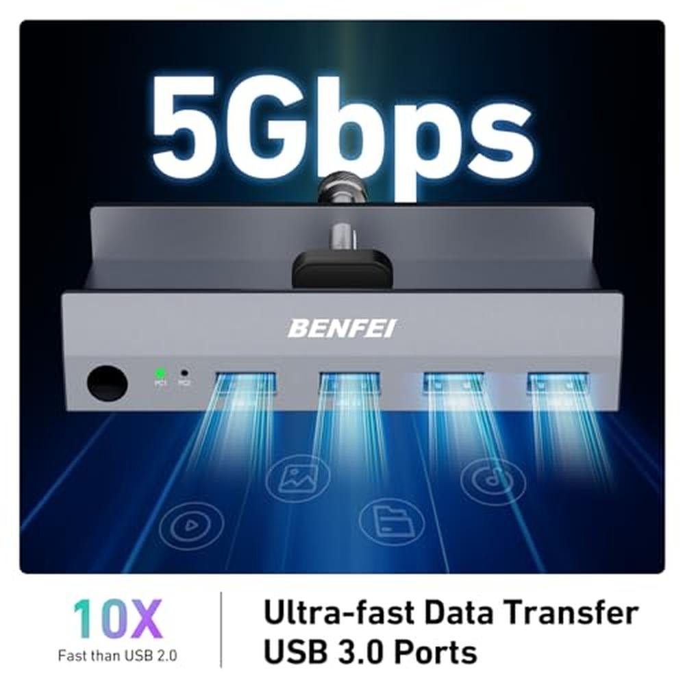 - Sharing 4 USB 3.0 PortsBENFEI KVM switches has 4 USB-A ports for sharing USB flash drives, printers, mobile hard drives, U disk, and other USB 2.0 and USB 3.0 devices. USB 3.0 offers data transfer speeds of up to 5Gbps, while USB 2.0 is only 480Mbps. It allows faster file and picture transfer to make work and life more convenient.