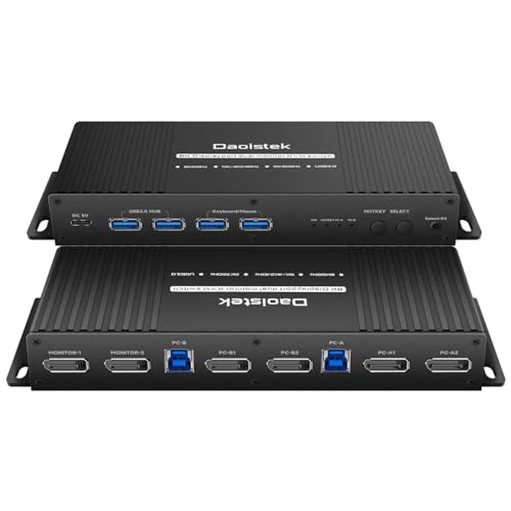 Kvm Switch Displayport 2 Monitors 2 Computers 4K 240hz Hotkey Switching kvm dp 2 Monitors 2 Computers 1440P 120hz 144hz 165hz 240hz Dual Monitor kvm Switch displayport FreeSync G-SYNC