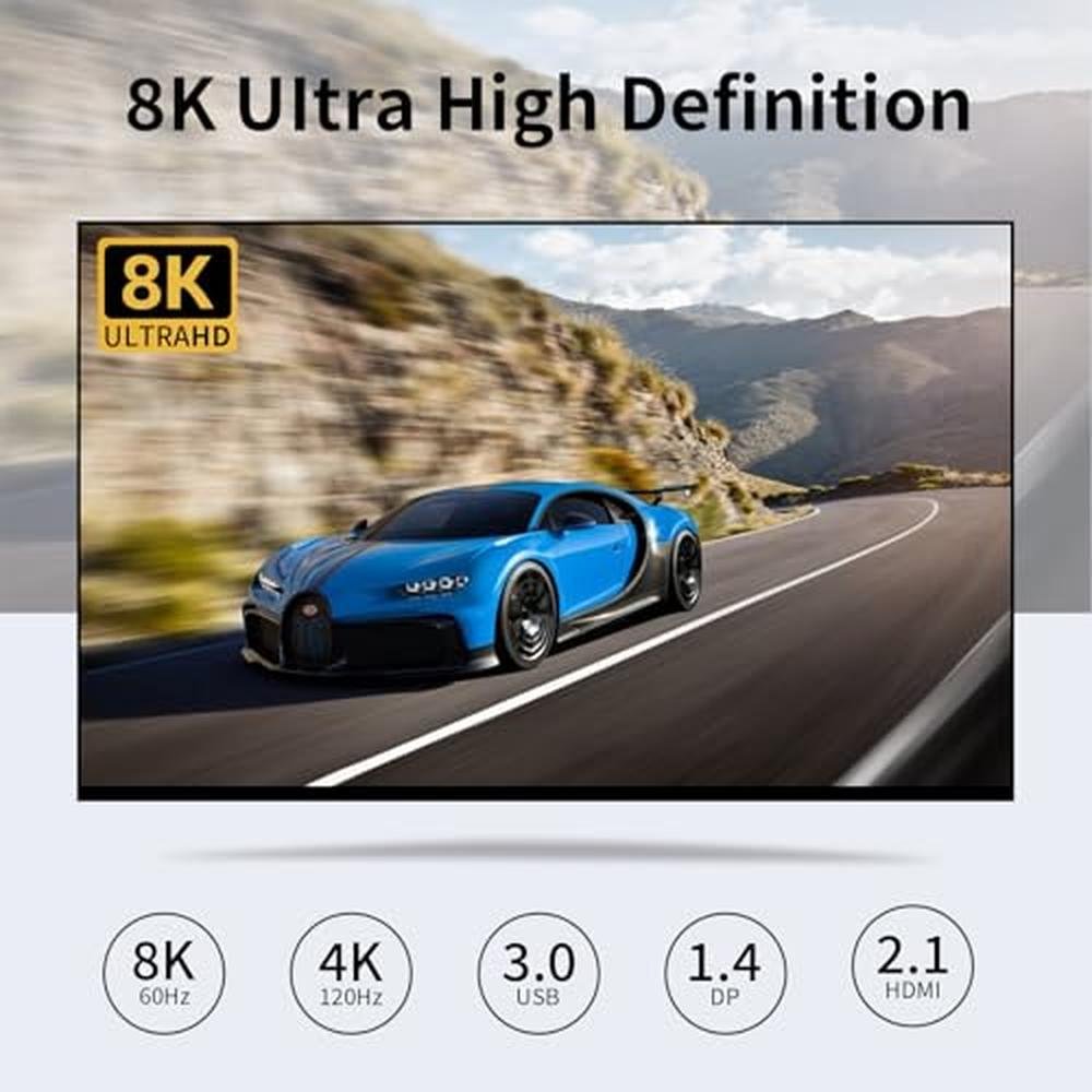 • 8K@60Hz UltraHD CapabilitySupport 8K60HZ/4K144HZ ultra-high definition resolution, backward compatible, bring top visual enjoyment. Push-button plus external extension switching design, gently press, you can quickly switch the computer host, office efficiency straight line soar.