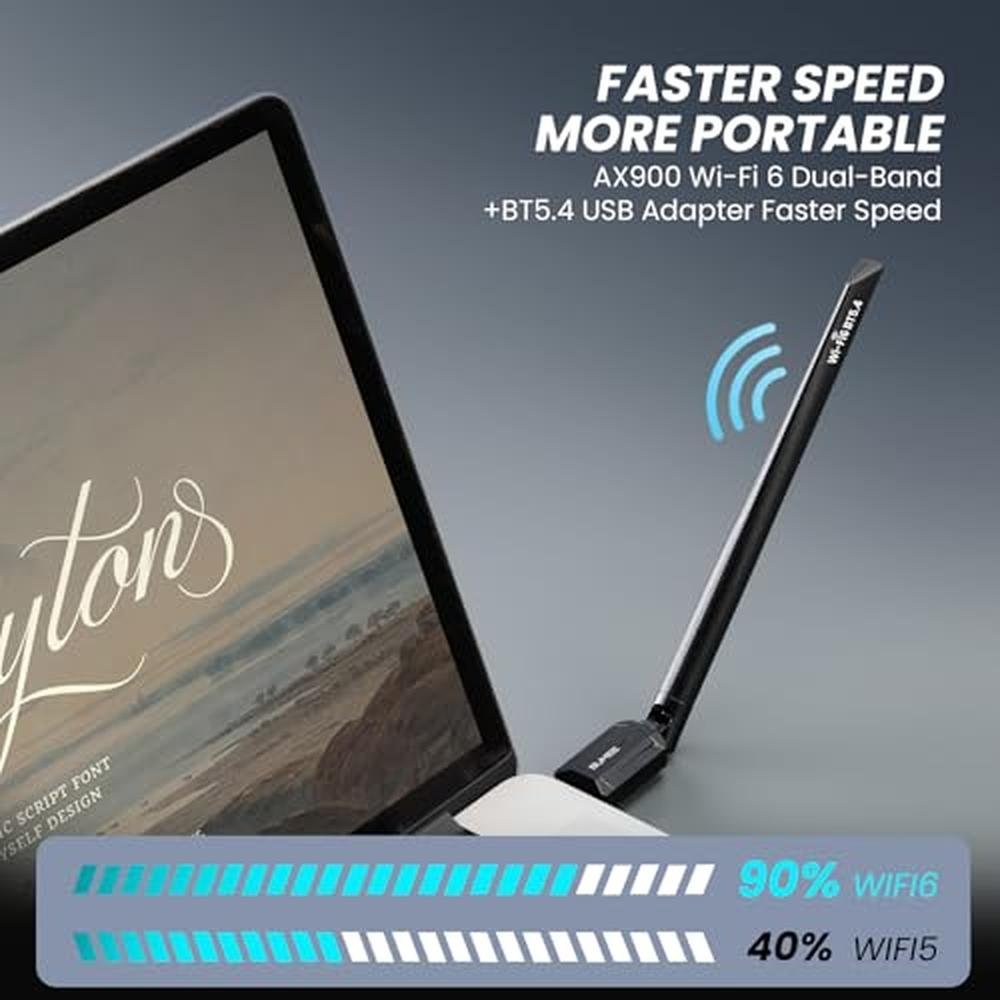 SUMEE 2-in-1 USB Bluetooth 5.4 & WiFi 6 Adapter | Dual-Band AX900Mbps 5GHz 2.4GHz Wireless Transmitter Receiver | Plug-and-Play for Windows 10 11 7