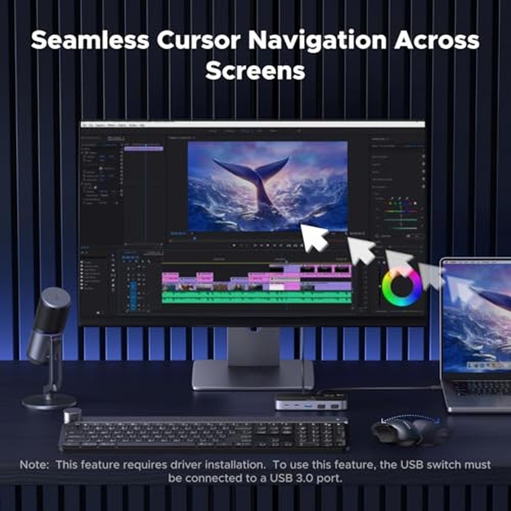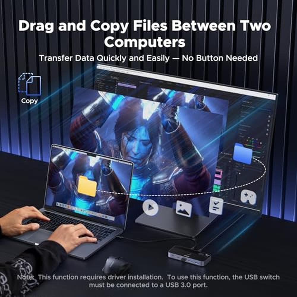 - Support File Sync & Cross-Screen Drag: This USB-C switch allows seamless file sync, drag & drop, and clipboard sharing between two computers Streamline your workflow, no more switching USB drives or uploading to cloud storage. (Function depends on system compatibility and mainly works via keyboard and mouse; others do not support such functions. And these features require driver installation.)