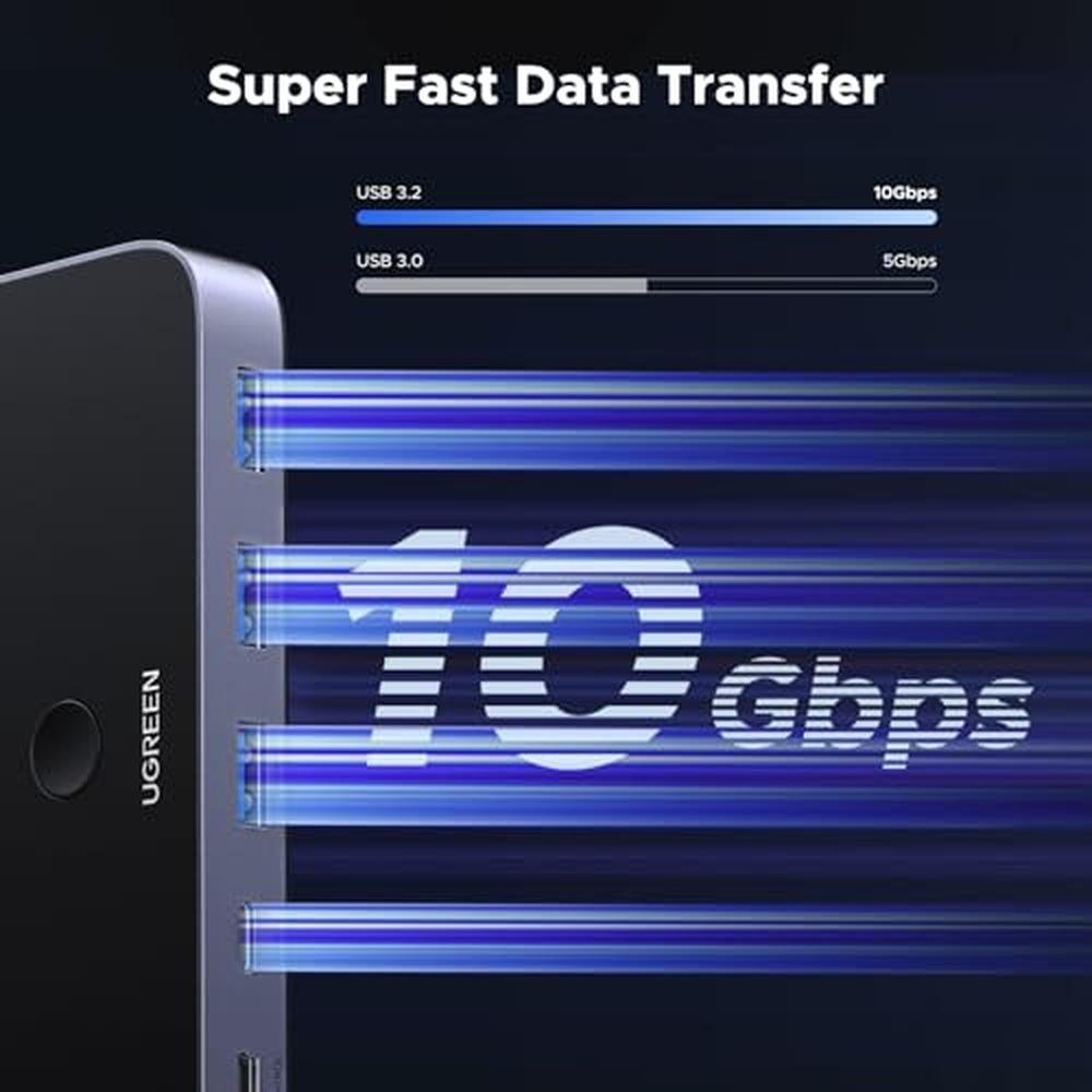 - 10 Gbps Transfer Speed: The USB-C switch is equipped with 4 USB 3.2 Gen 2 ports and speeds up to 10 Gbps. Faster than traditional 5 Gbps USB Switches, transfer 1 GB files in 1.5 seconds to improve work efficiency without waiting. (The USB ports are primarily for data transmission audio connections and charging are not recommended.)