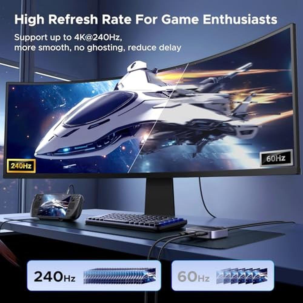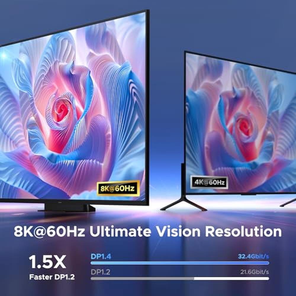 - Ultra-HD 8K Resolution: This DisplayPort+USB C switch is perfect for gamers, supporting 8K@60Hz, 4K@240Hz, 4K@120Hz, and backward compatible with 1080P@240Hz resolutions. It also supports 3D, Dynamic HDR, and HDCP2.3. NOTE: If you want to achieve a resolution of 8K, please use a standard DP1.4 cable with a length not exceeding 3 meter