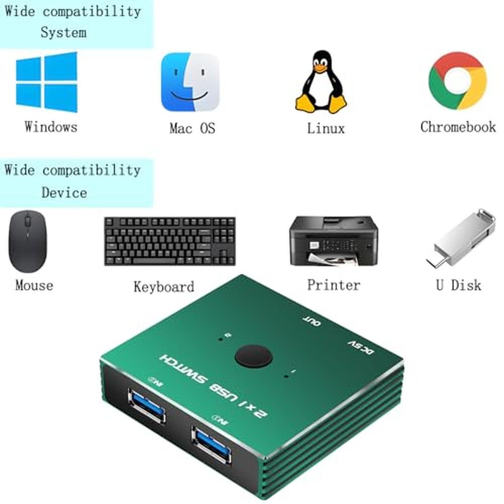 USB Switch 2 in 1 Out USB3.0 Switches Selector Uni-Directional USB Switcher 2 in 1 Out for Printer Scanner Keyboard KVM Switch (Cables were not Included). (US-KVM-001)
